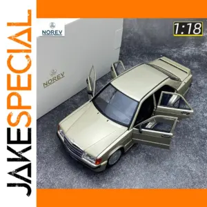 Imagine owning a meticulously crafted diecast replica of the iconic 1984 Mercedes-Benz 190E 2.3-16, presented in a luxurious metallic gold finish. Measuring around 25 centimeters long, this model encapsulates the timeless elegance and precise engineering of the original vehicle. Its glossy exterior highlights sharp, well-defined lines and a slightly boxy profile that captures the essence of 1980s design. With functional opening doors, aligned hinges, and visible side mirrors, this collectible offers a realistic display of craftsmanship. The transparent windows reveal a detailed interior, while the turnable front wheels and linked steering wheel enhance the model's authenticity. An ideal piece for enthusiasts and collectors seeking a stunning vintage classic.