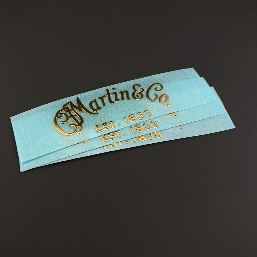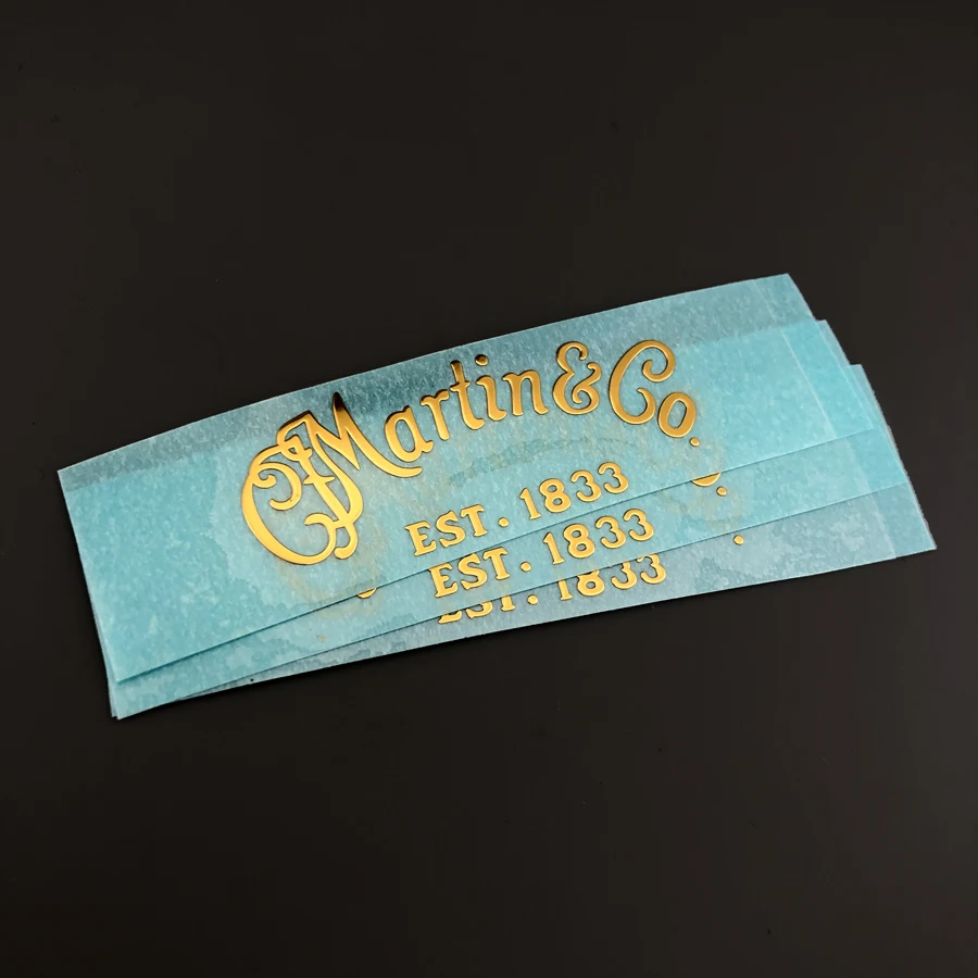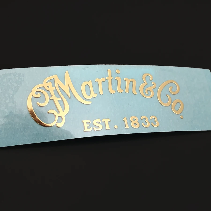 Enhance your guitar with these three self-adhesive metal decals, each 0.3 mm thick, crafted from durable metal with a shiny, reflective gold finish. Designed for application on guitar pegheads, they feature intricate swirling lines and vintage-style lettering, including “Martín & Co” and “EST. 1833.” These water slide decals are easy to apply, self-adhesive, and free of chemical components, providing a sleek, sophisticated look that elevates your instrument’s aesthetics with timeless craftsmanship. Made in South Korea, they are perfect for personalized guitar customization and durable enough to withstand regular use.