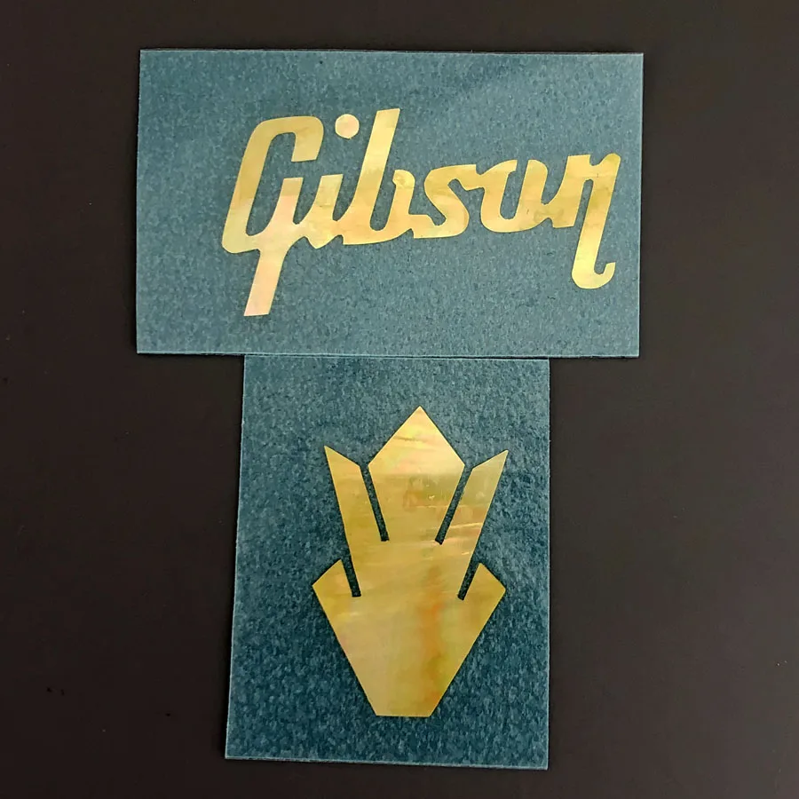 Imagine adding a touch of elegance and sophistication to your guitar with this stunning decal set. Crafted from high-quality composite materials, these decals feature a radiant, iridescent gold Mother of Pearl finish that captures light beautifully. The set includes a stylish “Gibson” logo in a flowing, italicized script, measuring approximately 40 mm by 21 mm, and a majestic crown design around 18 mm by 28 mm, both exuding luxury. Designed specifically for guitar pegheads, these decals are ultra-thin (0.1 mm) and self-adhesive, ensuring an easy, seamless application on your instrument’s headstock. Elevate your guitar's aesthetic with these premium decals, perfect for musicians and collectors seeking a refined look.