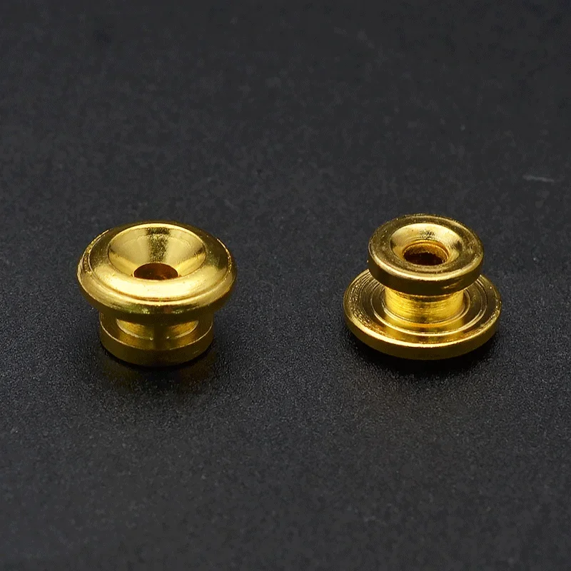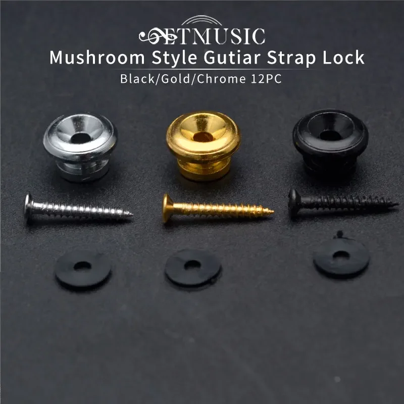 Enhance your guitar, bass, or ukulele with this set of 12 or 60 durable mushroom head strap buttons, available in elegant gold, silver, black, and chrome finishes. Crafted from iron, these stylish metal strap locks feature a polished, smooth surface with a distinctive mushroom-shaped design that adds a refined touch to your instrument. Each pack includes necessary spacers and screws for secure installation, ensuring a reliable hold during performances. The minimalistic yet striking appearance seamlessly combines functionality and aesthetic appeal, making your instrument look as good as it sounds. Perfect for professional musicians and enthusiasts seeking durable, attractive strap locks.