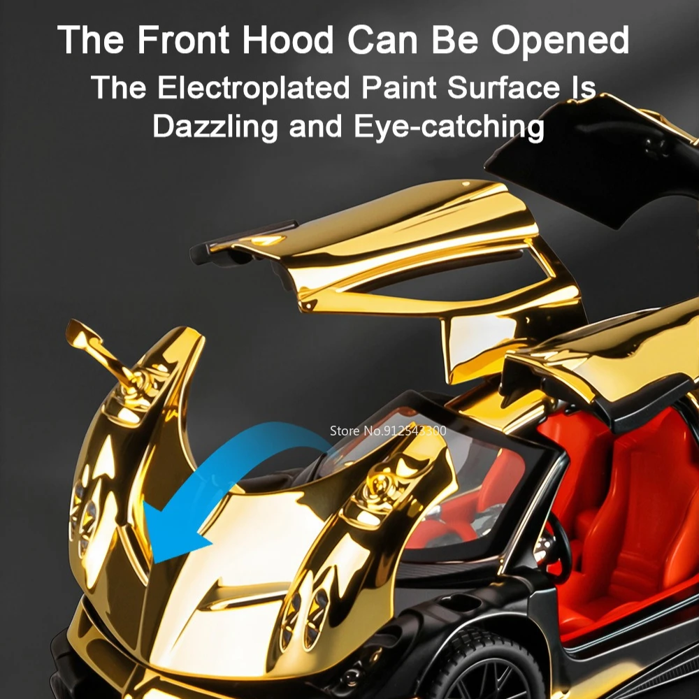 You’ll love the way this model brings luxury and performance right into your space. Whether you're a passionate collector or a car enthusiast, owning this detailed miniature will make your collection truly stand out. Its high-quality features and striking gold finish make it not just a display piece but also an eye-catching conversation starter. Add this exquisite model to your collection today—experience the thrill of owning a miniature masterpiece that embodies speed, style, and craftsmanship. Don’t miss out—make this luxurious Pagani model yours now!