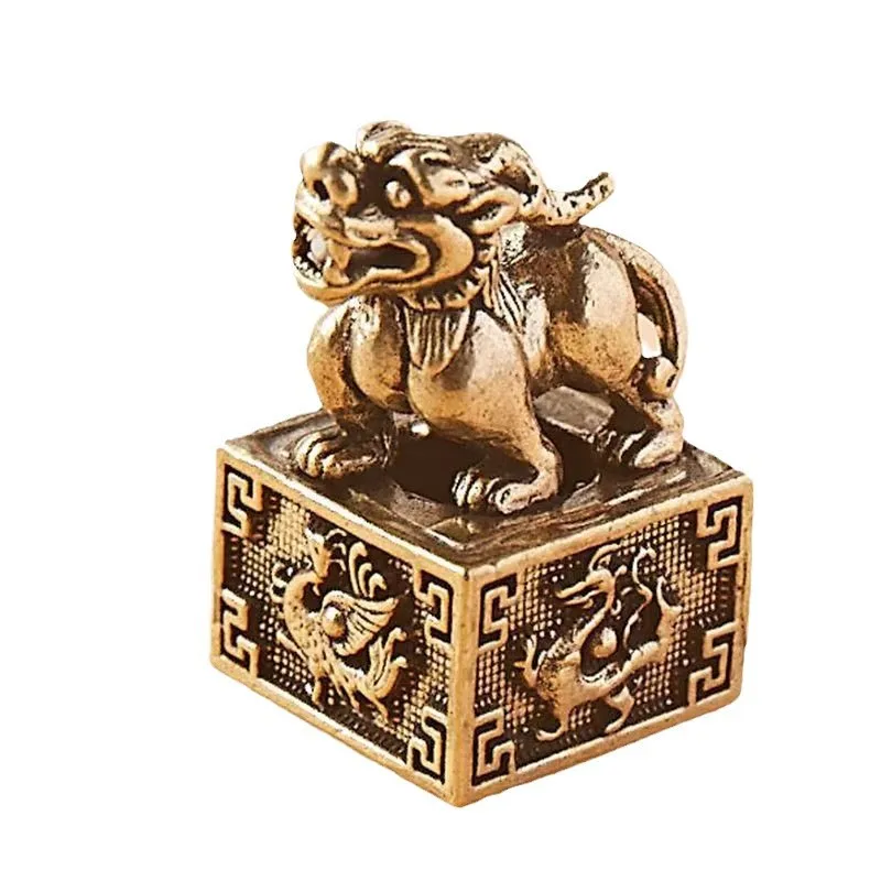 - The design features a detailed Pixiu sculpture atop a cube-shaped base, with traditional engravings in contrasting darker tones for depth and visual appeal.