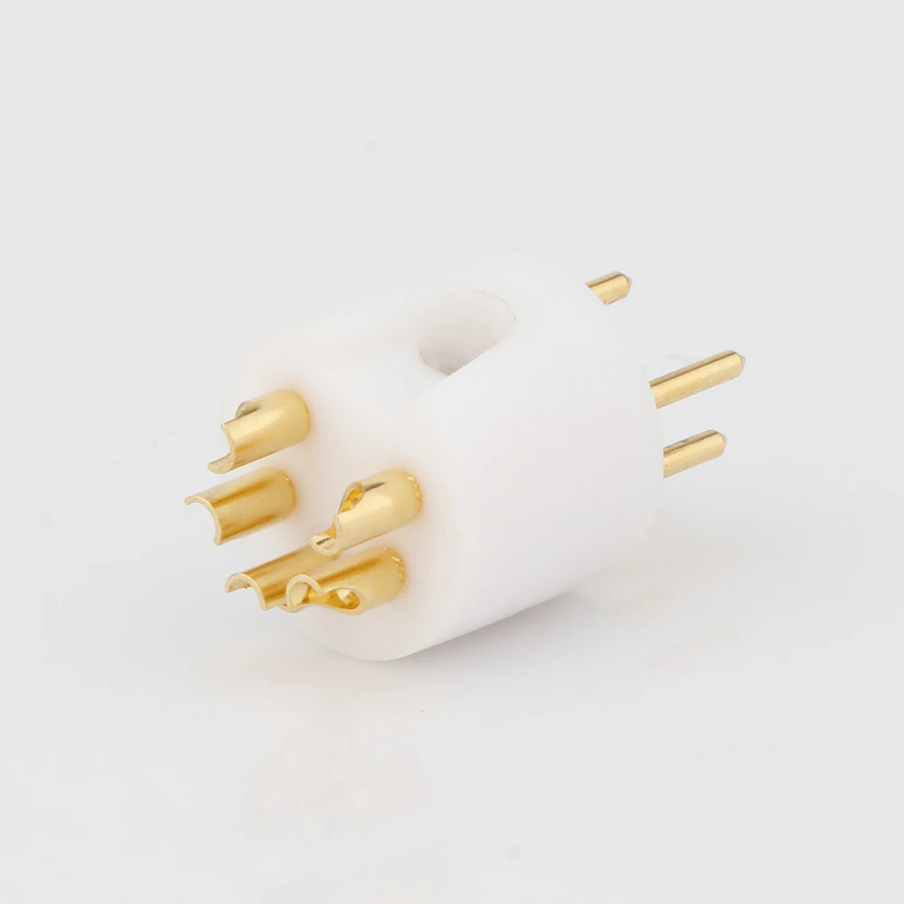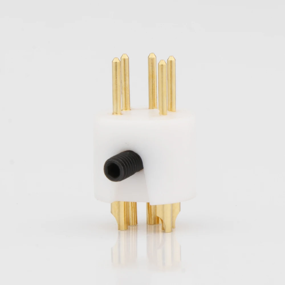 Imagine upgrading your high-end audio setup with this meticulously crafted gold-plated 5-pin DIN connector, designed specifically for turntables and tonearms. Its sleek white plastic housing provides a modern, minimalist aesthetic, while the polished gold pins guarantee optimal signal transfer and durability. The compact size, with a 12mm diameter and 20mm length, ensures seamless integration into your existing setup. The black ribbed screw port adds a functional contrast, offering secure cable attachment. Made with Teflon insulation and soldered connections, this connector promises consistent performance and longevity. Whether you're a serious audiophile or enthusiast, this high-quality component elevates your listening experience by ensuring precise, crystal-clear audio transmission.