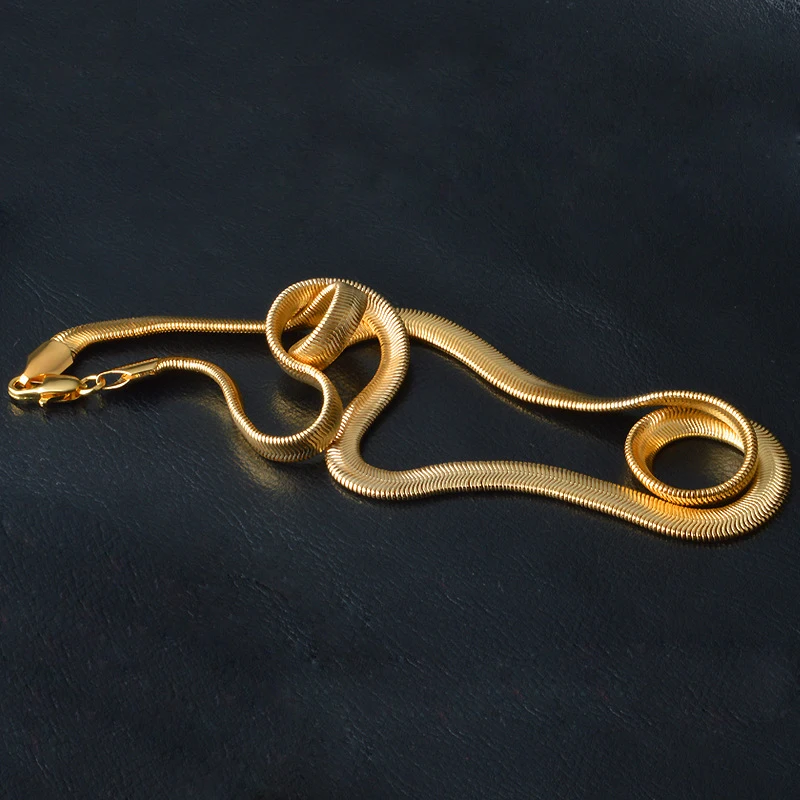 Experience the perfect blend of luxury and modern style with this sleek, gold-plated snake chain necklace. Crafted from high-quality sterling silver stamped with 925 and finished with an 18K gold plating, this piece exudes sophistication and durability. Its 6mm width showcases tightly linked, parallel ridges that create a geometric, minimalist aesthetic. Available in various lengths—40cm, 45cm, 50cm, 55cm, and 60cm—you can easily find the perfect fit for any occasion. The polished surface reflects light beautifully, elevating your look whether you're attending a party, wedding, or adding flair to daily wear. Its hypoallergenic properties ensure comfort and safety for sensitive skin, making it ideal for both men and women seeking versatile jewelry.