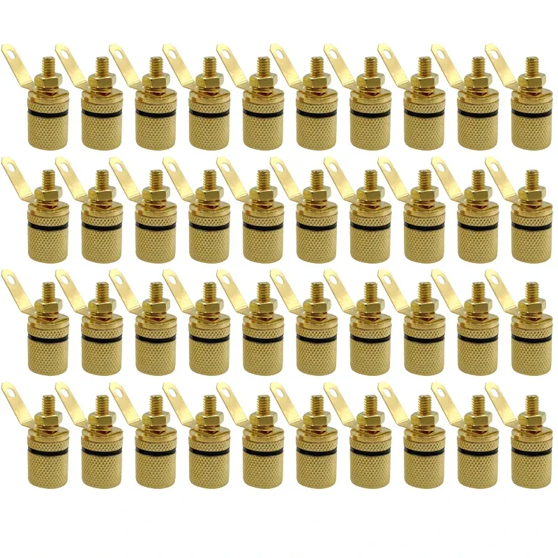 Experience enhanced connectivity and a polished aesthetic with this set of 40 high-quality gold-plated amplifier speaker terminal binding posts. Designed for audiophiles and sound enthusiasts, these posts feature a durable, cylindrical metal body with a knurled surface for excellent grip during installation. The posts come in various color options: 20 red and 20 black, all black, or all red, allowing you to easily identify polarity and channel connections. Each post is topped with a hexagonal gold-colored screw and a flat mounting tab, ensuring secure, stable connections while adding a sleek, professional look. The gold plating guarantees improved conductivity and corrosion resistance, elevating your audio system’s performance and aesthetic appeal. Perfect for high-quality audio wiring, these posts are an ideal upgrade for your amplifier or speaker setup.