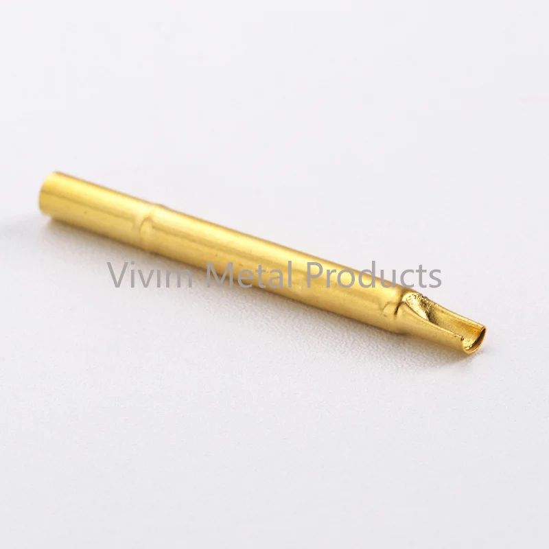 Experience the perfect blend of functionality and elegance with this gold-plated R156-4S test receptacle. Crafted from high-quality brass and coated with a shiny, durable gold finish, it offers excellent electrical conductivity and corrosion resistance. Its sleek, tubular design ensures a smooth, polished surface that reflects light beautifully, highlighting the minimalistic yet professional aesthetic. The uniform cylindrical shape provides a precise fit within your testing setup, while the subtle collar at the wider opening adds stability. Designed for easy installation and removal, this receptacle is ideal for ICT/FCT spring test probes, ensuring reliable contact and long-lasting durability in demanding testing environments. Whether you’re performing conductive tests or assembly checks, this component combines technical excellence with a refined look.