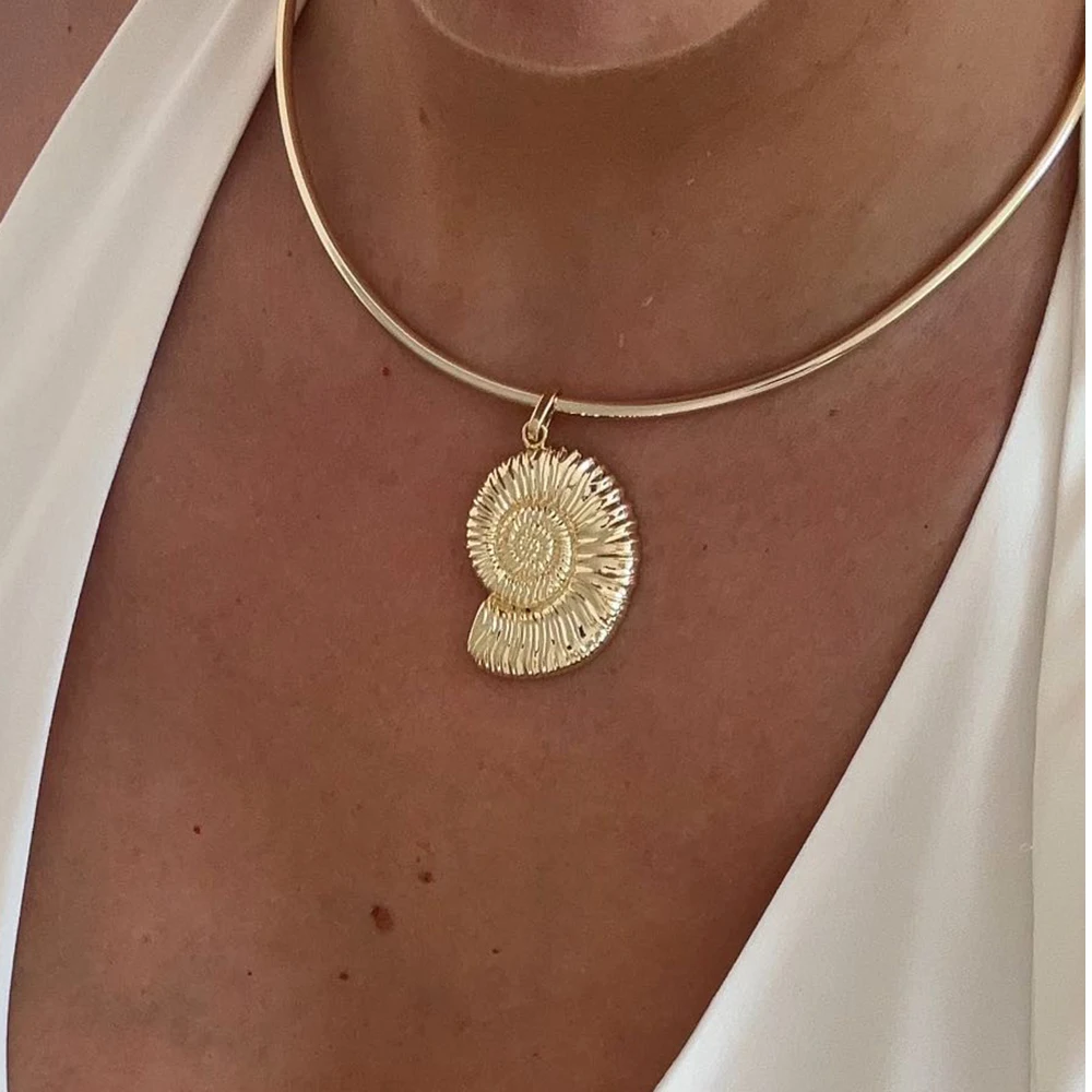 - Fashionable women's necklace with a smooth, round shape and a polished gold-tone finish, offering a modern, versatile look for diverse styles and occasions.