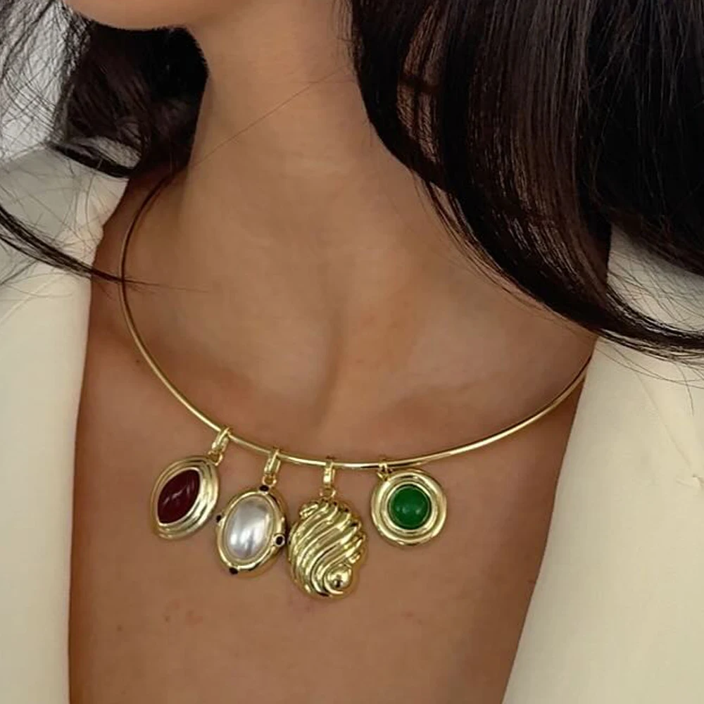 Imagine elevating your style effortlessly with this sleek, minimalist necklace. Its smooth, round shape and shiny, gold-colored finish add a touch of modern elegance to any outfit. Designed with a refined and simple aesthetic, it complements both casual and formal looks, making it perfect for parties or everyday wear. The versatile, interchangeable pendant with a deep red gemstone beautifully captures attention, allowing you to personalize your look. Crafted from high-quality stainless steel, this necklace is durable, corrosion-resistant, and suitable for all occasions. Its lightweight, refined design ensures comfort while making a sophisticated statement. Embrace effortless chic with this timeless accessory that enhances your unique style.