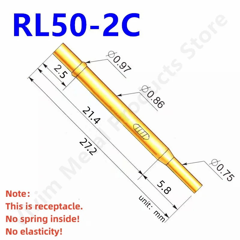 Experience reliable and durable contact with this this gold-plated receptacle designed specifically for ICT and FCT spring test probes. Crafted from high-quality brass and finished with a shiny gold coating, it ensures excellent conductivity and corrosion resistance. Measuring 27.2mm in length, with an outer diameter of 0.86mm and a collar diameter of 0.97mm, it features a collar height of 2.5mm and a mounting hole diameter of 0.90mm for secure installation. Its smooth, polished surface and precise manufacturing allow for quick, easy installation and removal, making maintenance effortless. Whether you’re testing PCBs or electronic assemblies, this receptacle offers stable, repeatable contact for your testing needs, providing confidence in every measurement. Its compact size and high-quality metal ensure long-lasting performance in demanding environments.