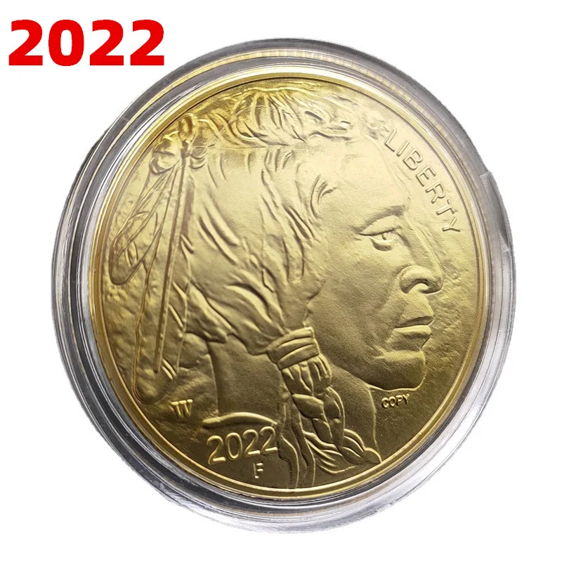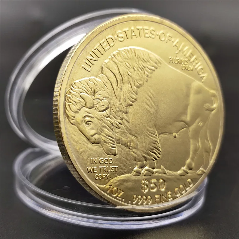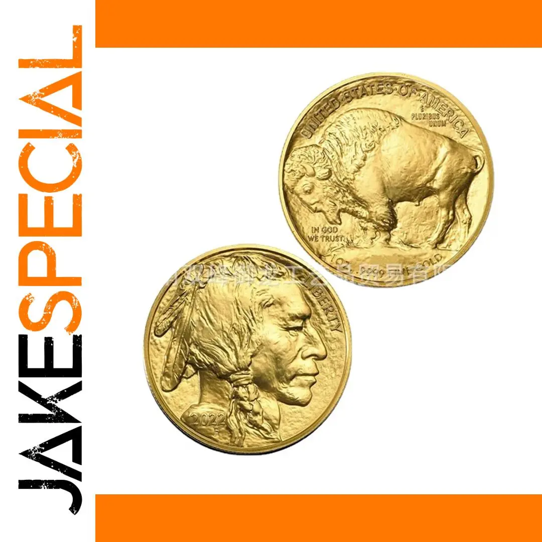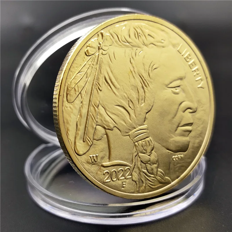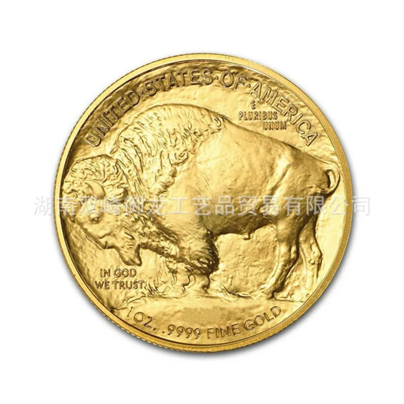 Immer elevate your collection with this stunning gold-plated US Buffalo souvenir, designed to capture the majestic essence of American heritage. Crafted with meticulous detail, it features a textured, realistic depiction of a powerful buffalo in profile, emphasizing its muscular build and curved horns. Complemented by a traditional Native American chief in profile, adorned with an elaborate feathered headdress and finely detailed facial features, this piece radiates patriotism and cultural pride. Its metallic gold finish adds a luxurious touch, while the raised relief engravings showcase intricate craftsmanship. Perfect for display or as a meaningful gift, this collectible embodies American history, nature, and Native American traditions all in one beautifully designed piece.
