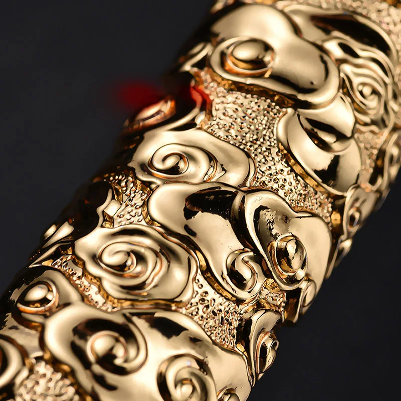 - Elegant relief dragon Huabiao design with detailed cloud motifs, crafted on a textured, gold-tone metal surface for visual impact and tactile pleasure.