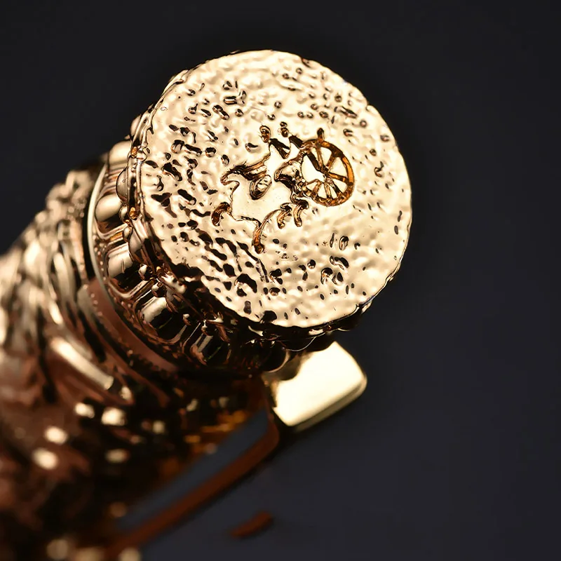 - Made from durable, polished metal in a luxurious golden finish, exuding a regal appearance perfect for collectors and enthusiasts alike.