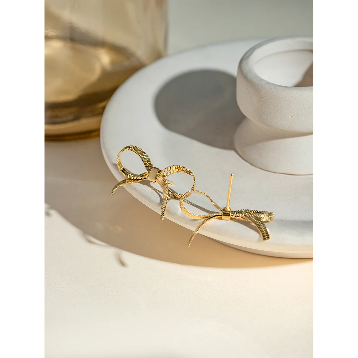 Get your perfect style with this gold-tone bow earrings now!