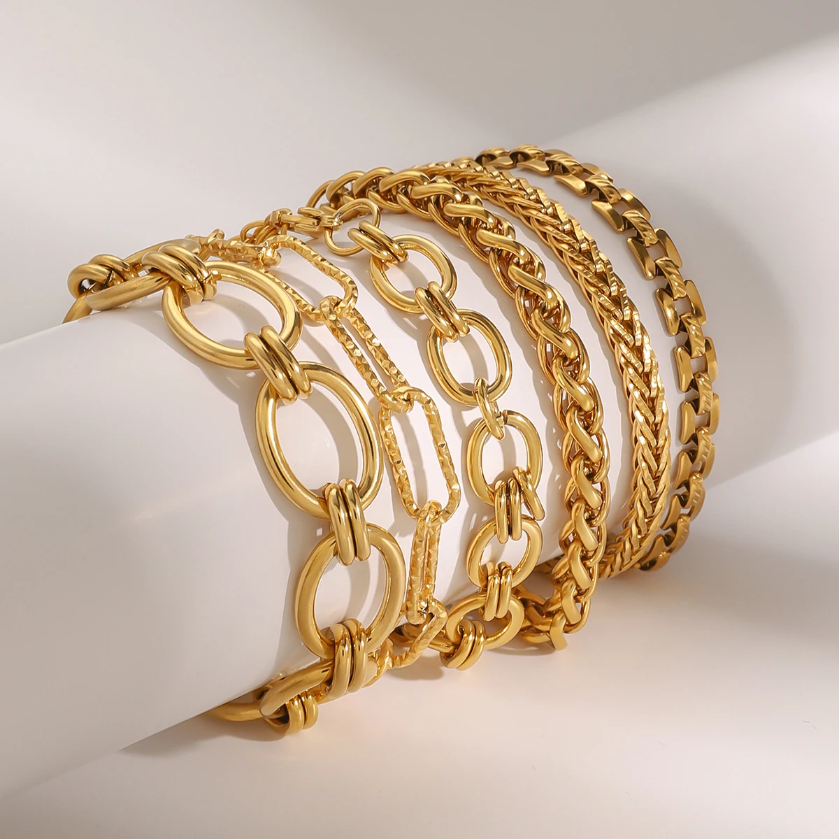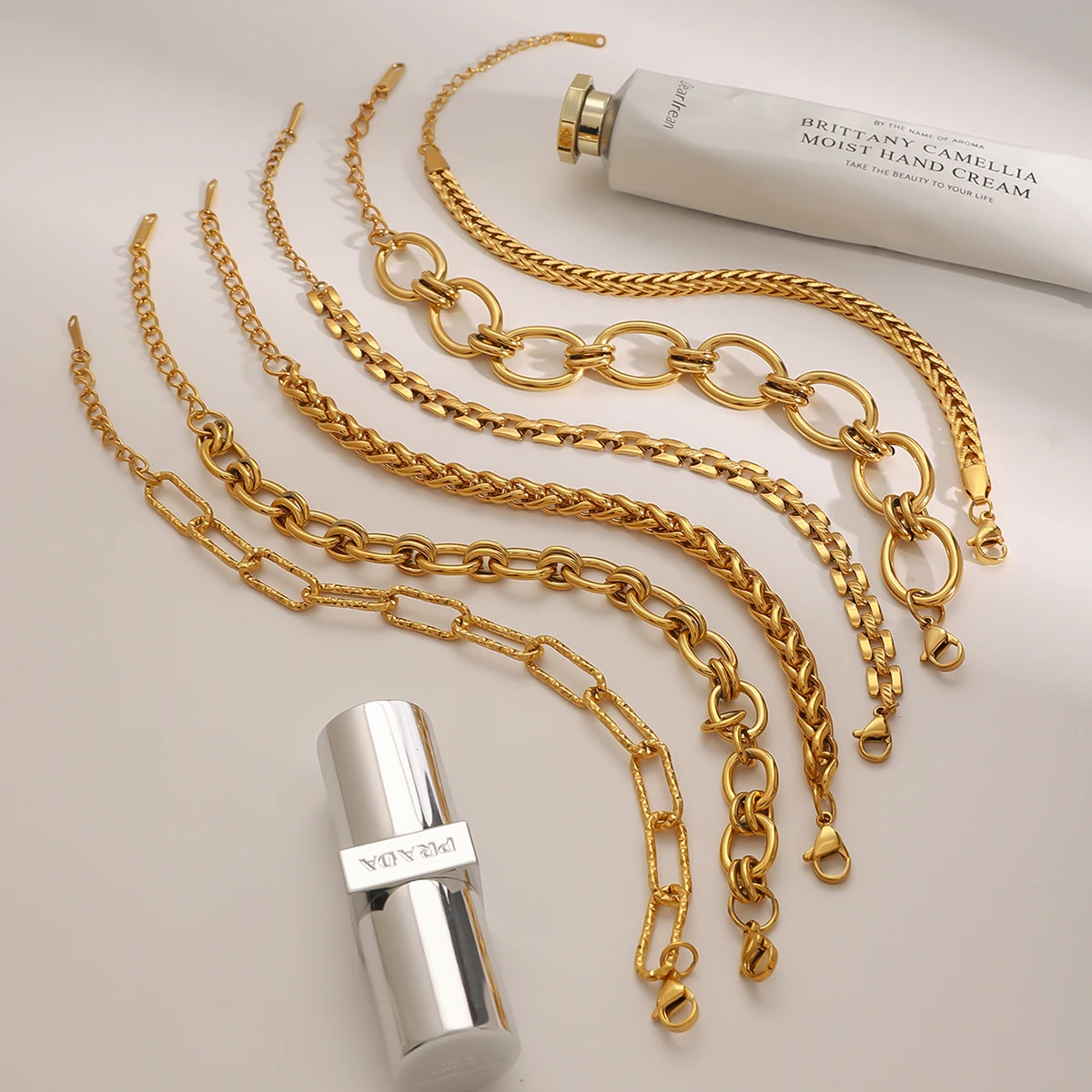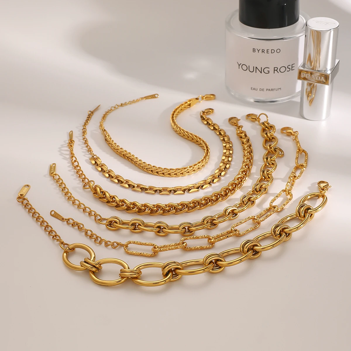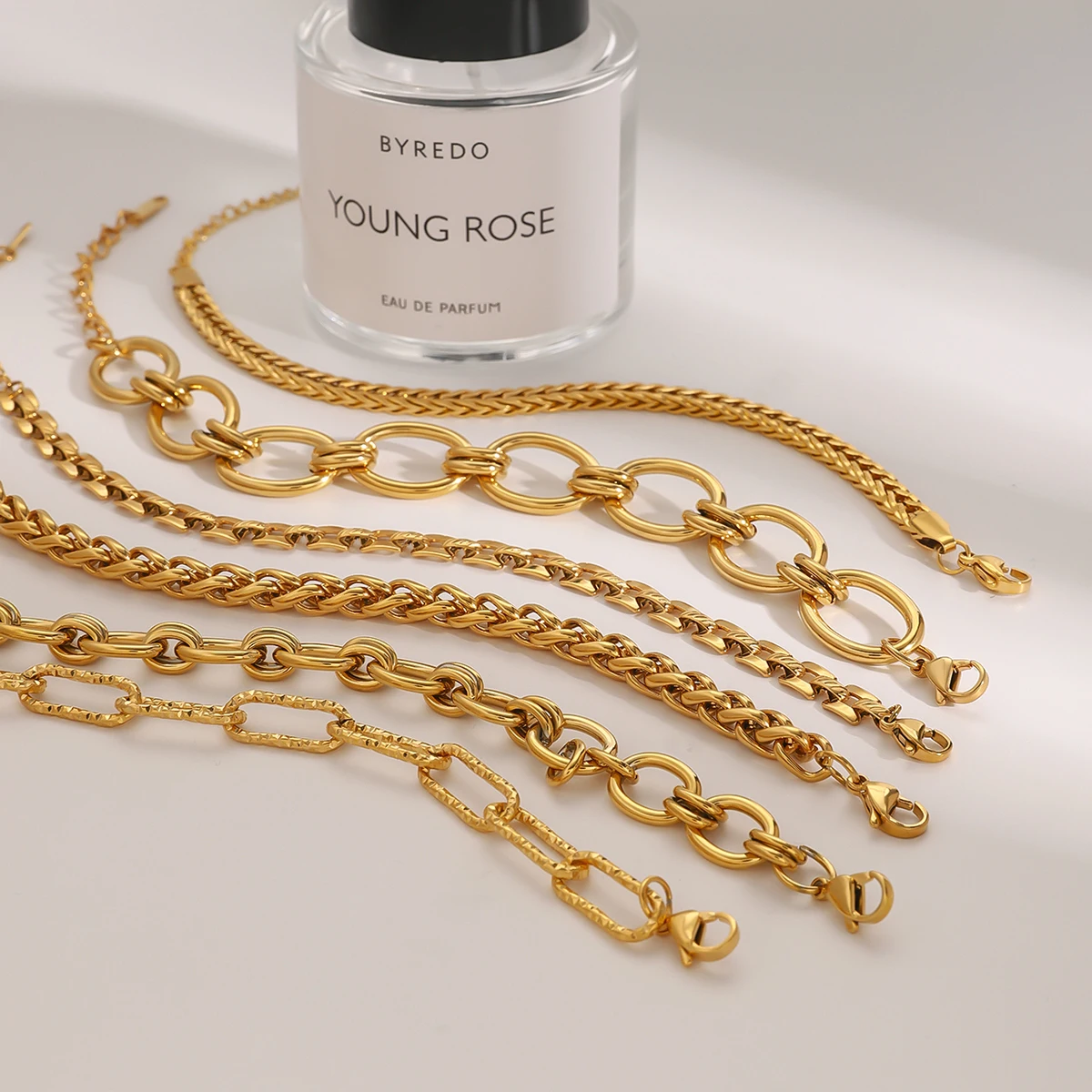 Imagine yourself confidently wearing this stunning chain bracelet, a testament to your sophisticated taste. Its luminous gold finish and sleek design instantly elevate your look. Whether for a special event or everyday style, it effortlessly complements your wardrobe. With its durable, hypoallergenic, waterproof properties, you can enjoy wearing this piece around the clock without worries. Add a touch of elegance and modern charm to your collection today and enjoy a versatile accessory that’s built to last and impress. Transform your style—this is the jewelry you've been searching for.
