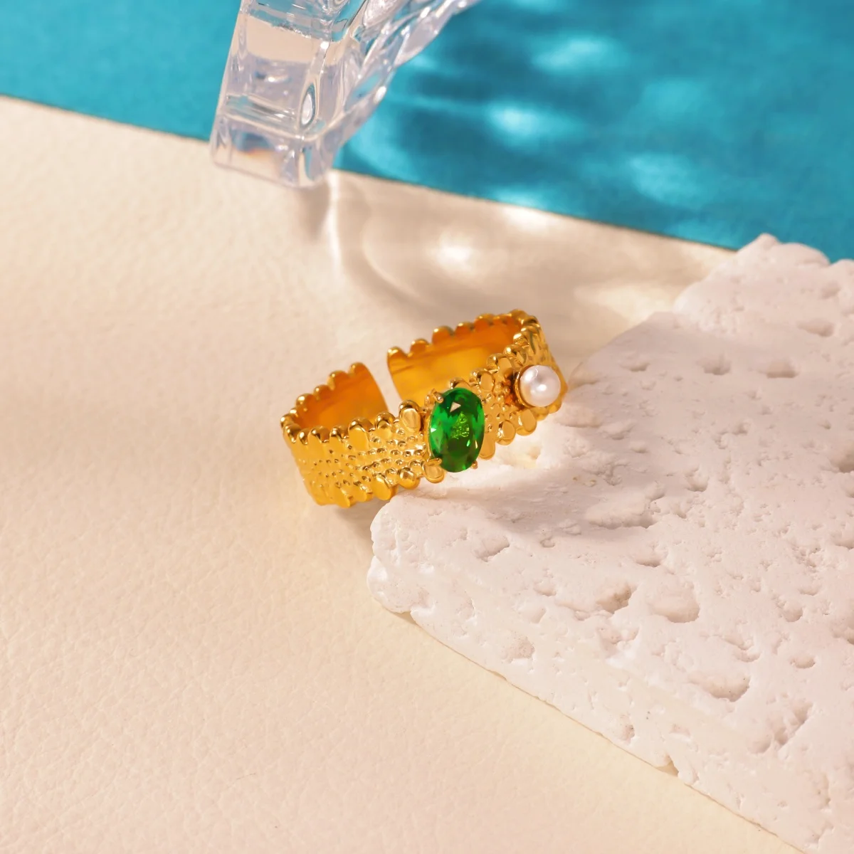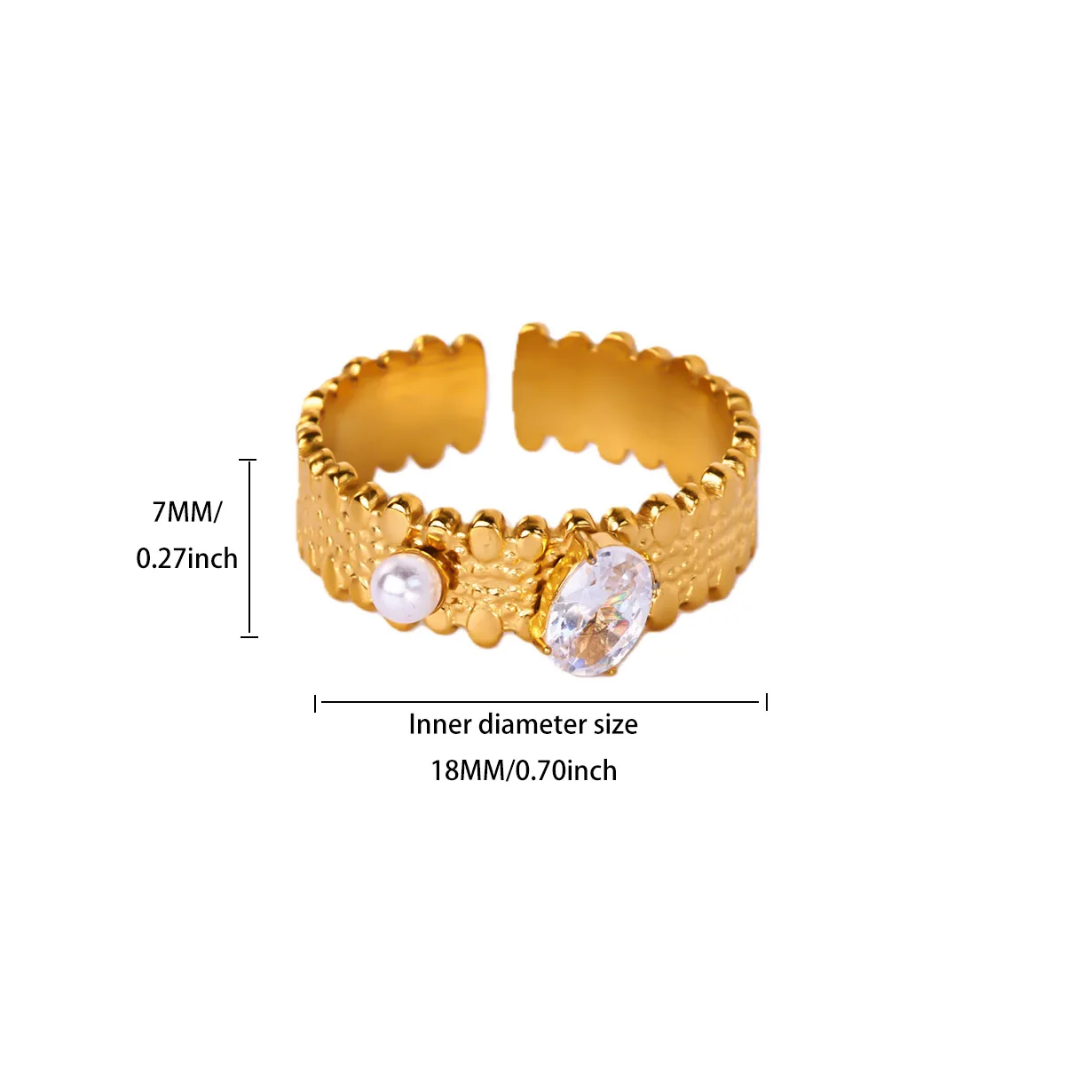 - Decorated with small, rounded, slightly raised flowers evenly spaced around the band, adding a touch of elegance and charm.