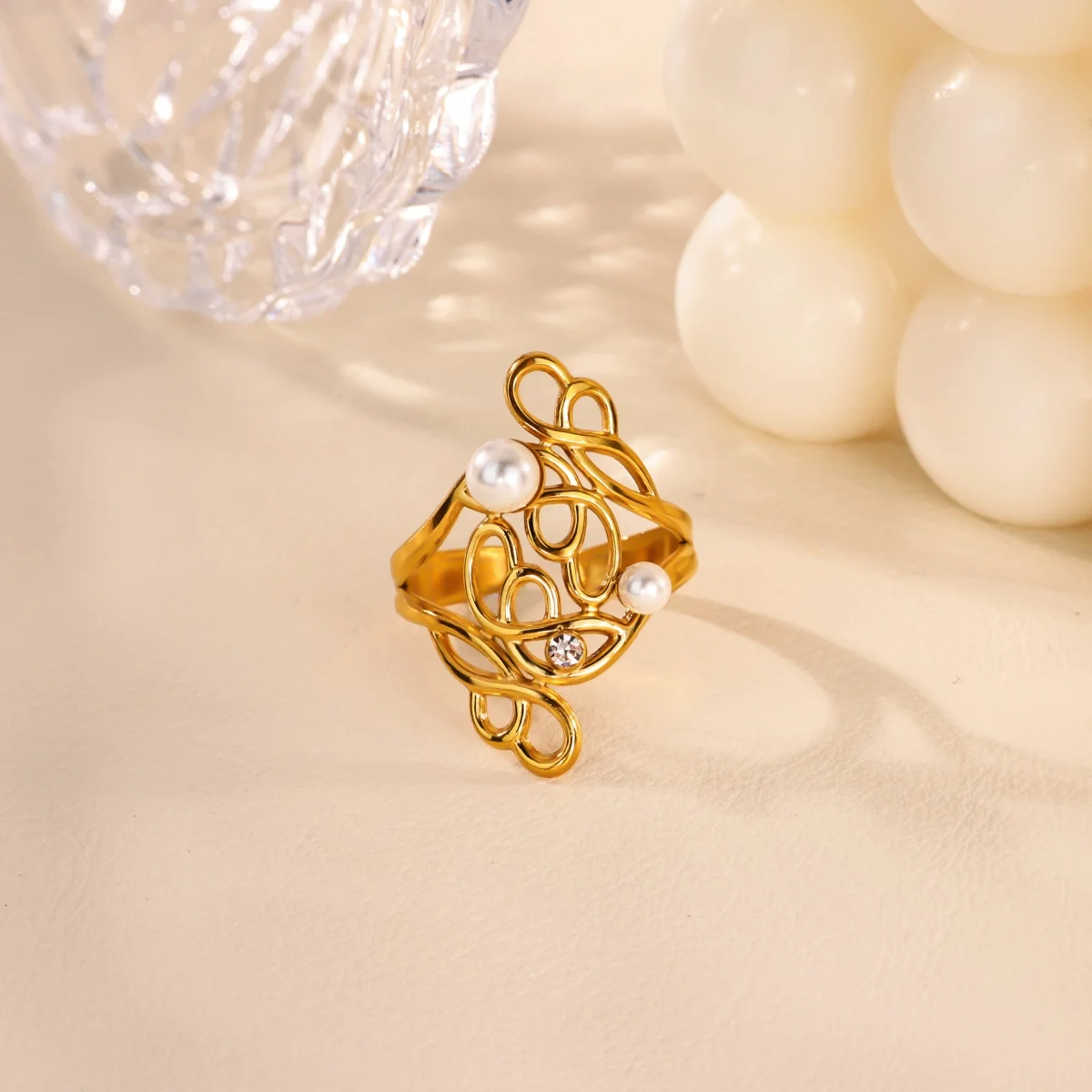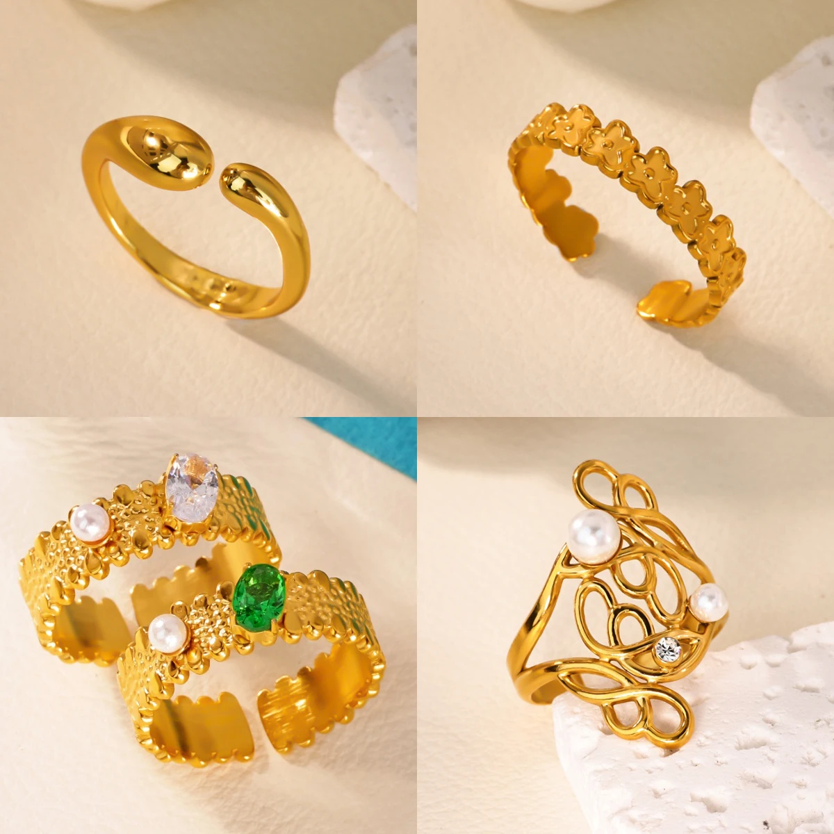 This Elegant Gold Stainless Steel Floral Ring