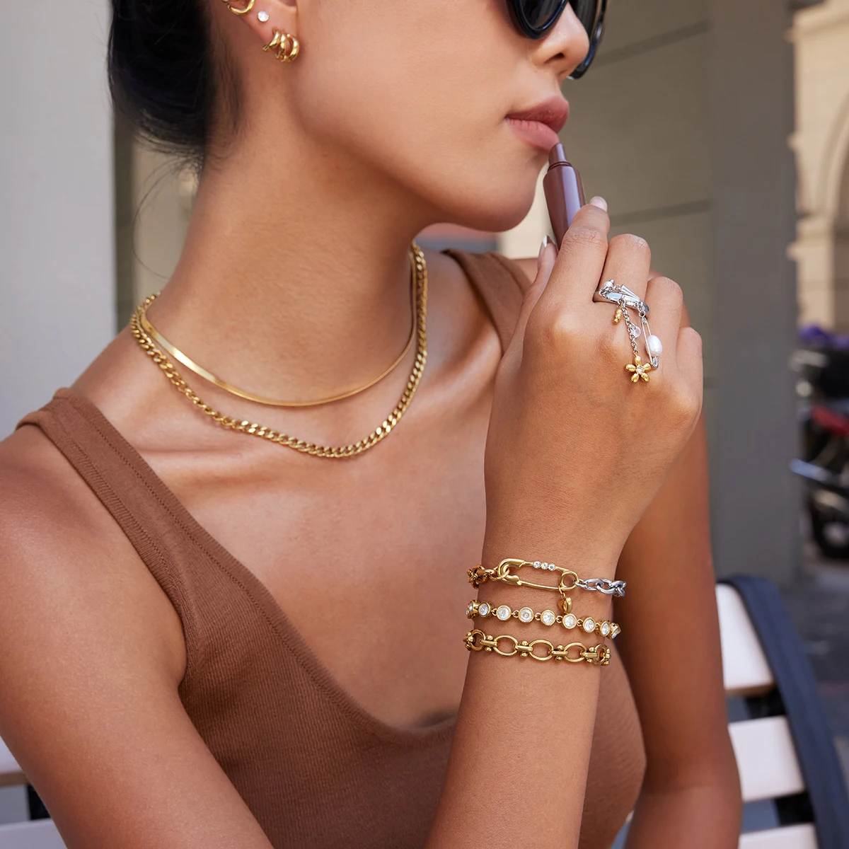 Gold Stainless Steel Geometric Link Bracelet
