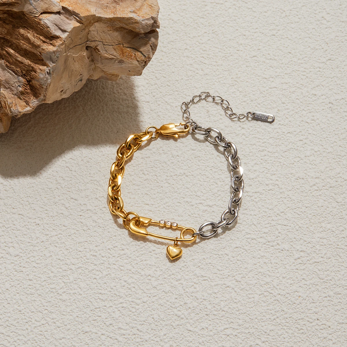 Elevate your style with this fashionable women’s bracelet featuring a gold-tone stainless steel chain with a geometric link design. Measuring a versatile size compatible with all wrist sizes, it is secured by a reliable lobster claw clasp for comfort and security. The trend-setting model number JDB0305040-PS showcases a sleek, modern aesthetic, perfect for adding a touch of sophistication to both casual and dressy outfits. Crafted from stainless steel without chemical concerns, this jewelry piece combines durability with contemporary elegance, making it an inspiring accessory for the modern woman seeking luxurious simplicity and eye-catching design.