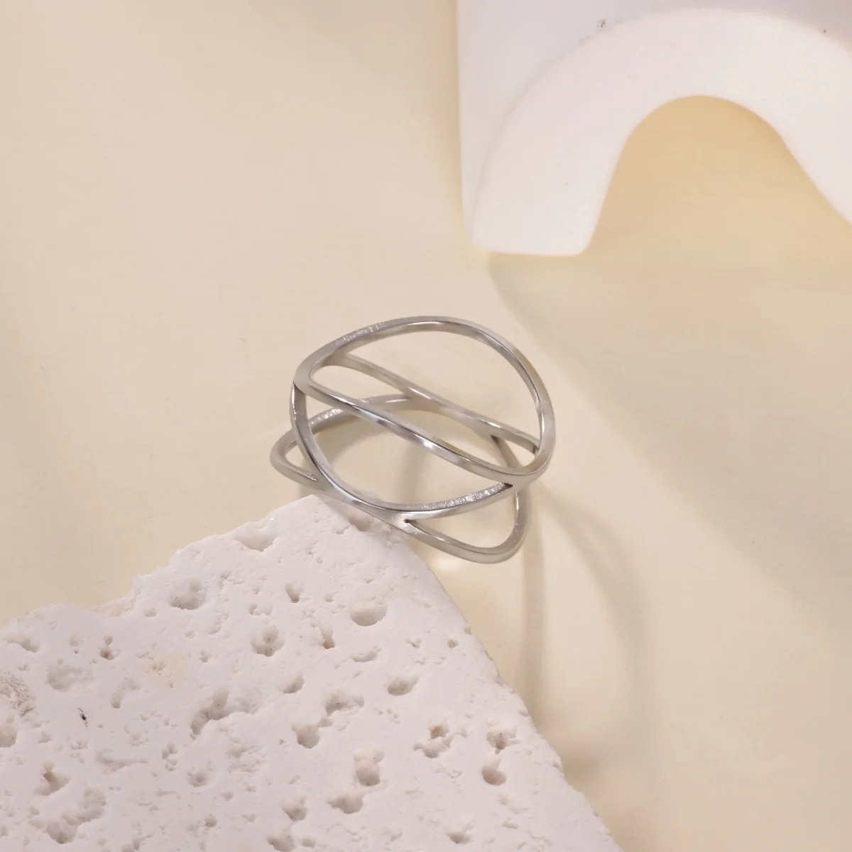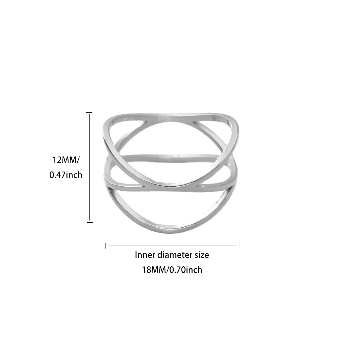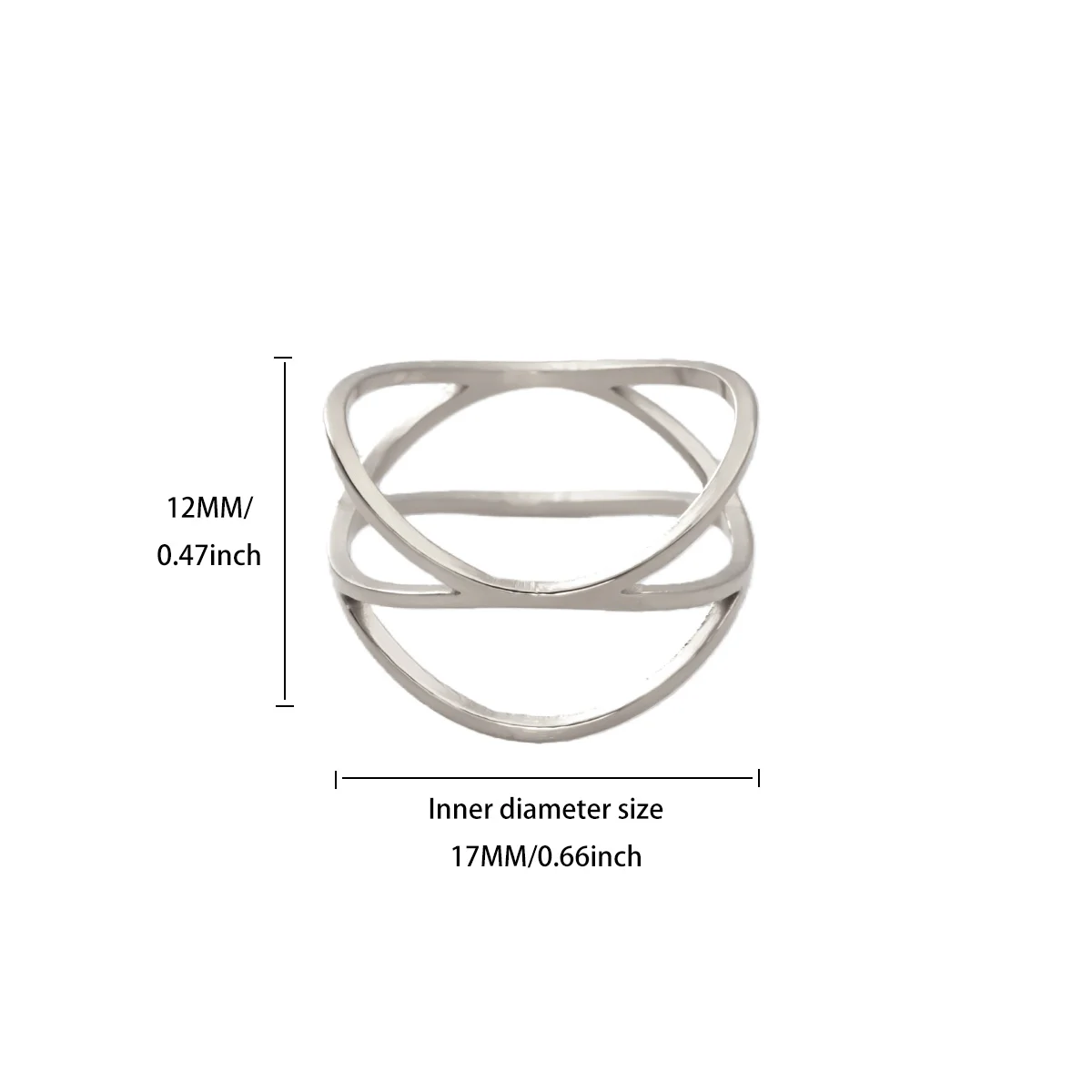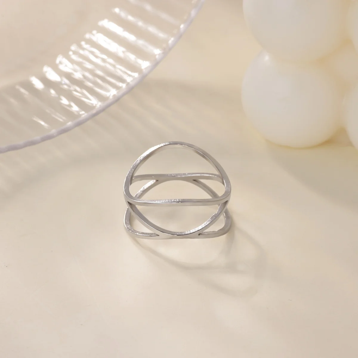 - Open band design with interconnected oval shapes, measuring approximately 2mm in width, for a modern and minimalist aesthetic.