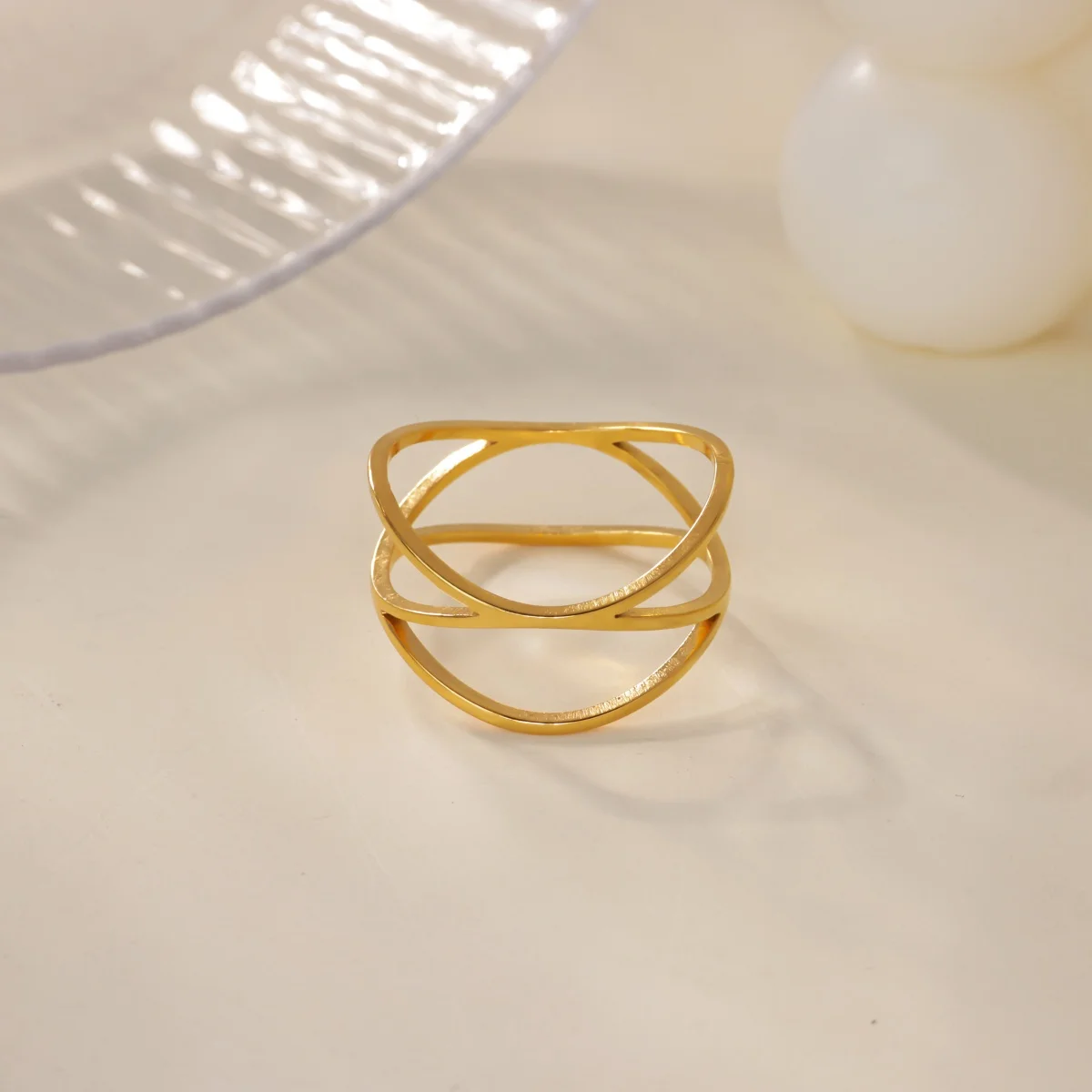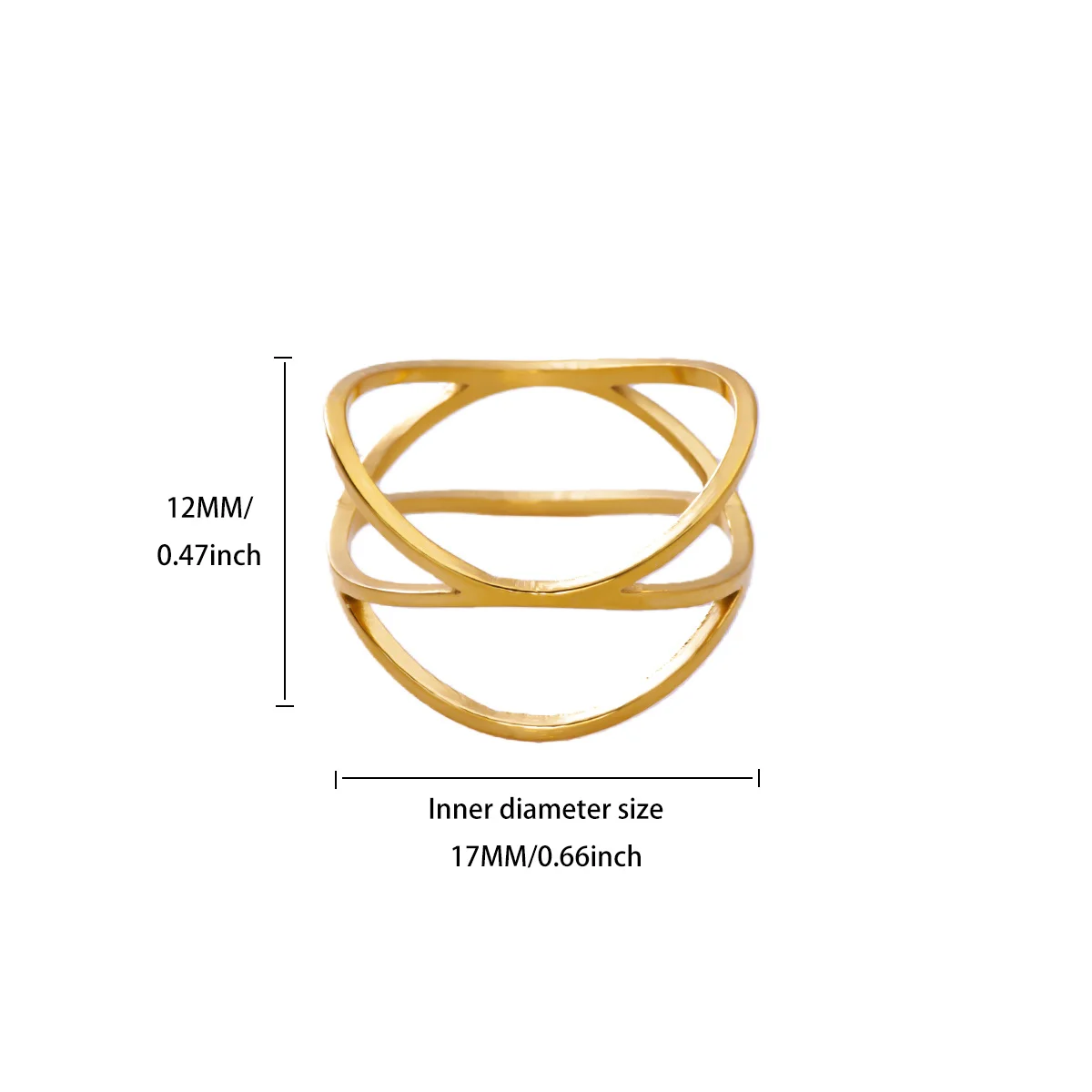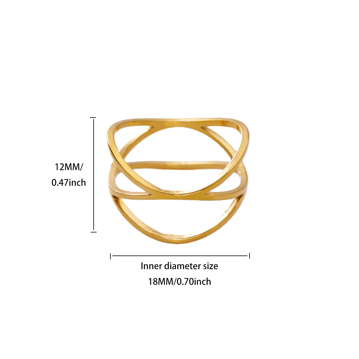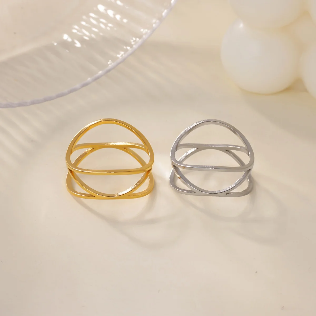Experience the elegance of these minimalist, gold-colored stainless steel rings designed for modern fashion lovers. Featuring a sleek, open band with interconnected oval shapes, they embody contemporary style while maintaining a refined simplicity. The slim 2mm width provides a delicate, lightweight feel, perfect for daily wear or special occasions like weddings, parties, or Valentine’s Day. Their unisex design makes them suitable for any gender and outfit, seamlessly enhancing your look with a touch of sophistication. The polished metallic finish creates a luminous shine that reflects light beautifully, highlighting their geometric beauty. Whether worn alone or stacked, these rings add a chic, fashionable edge to your jewelry collection, representing elegance and versatility in one package.