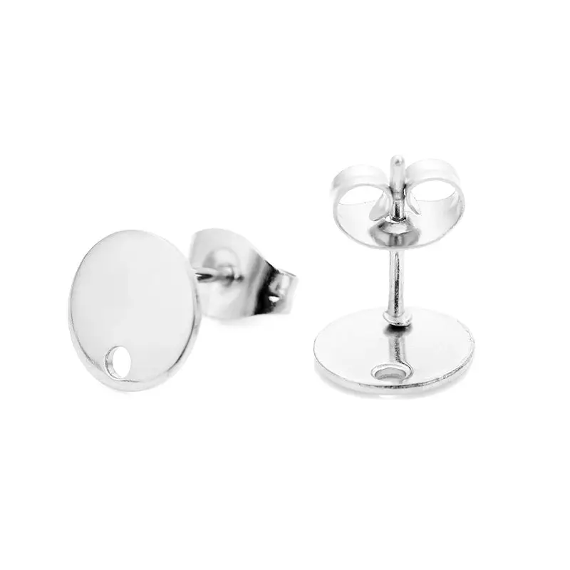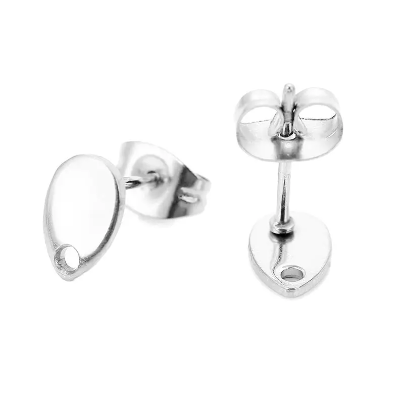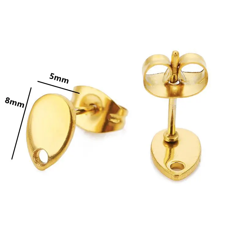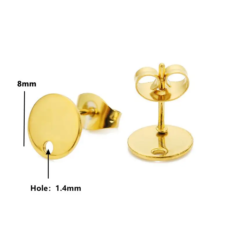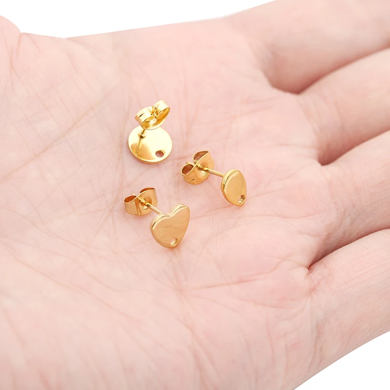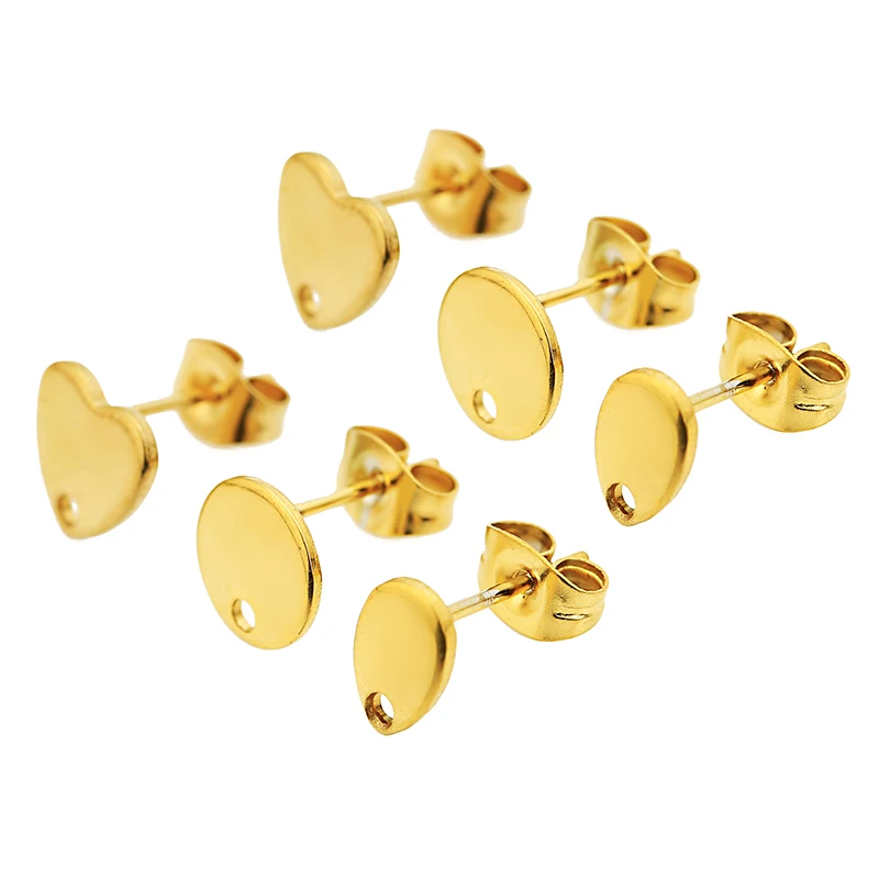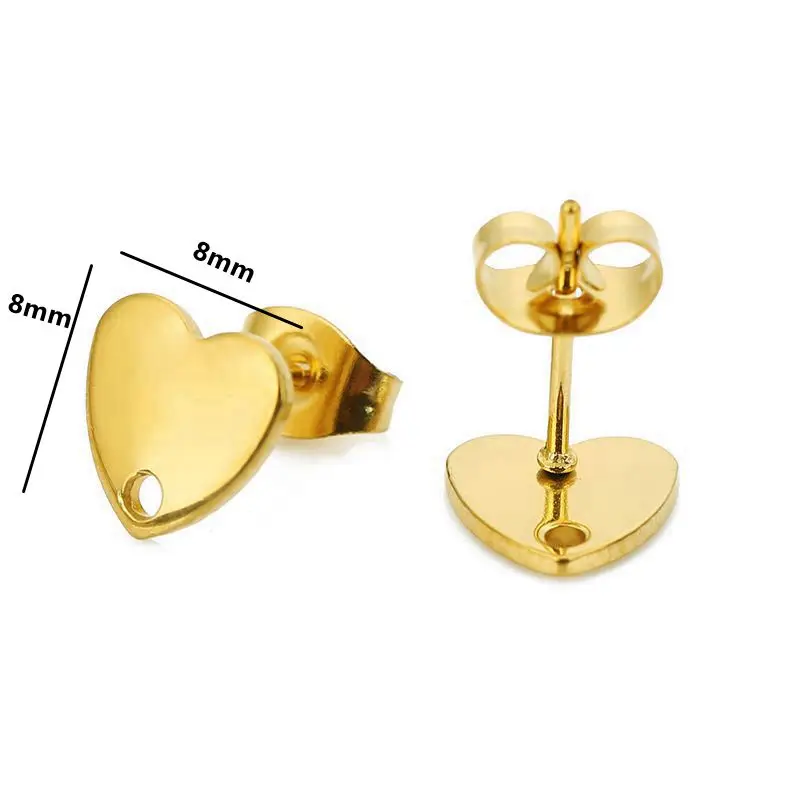 Elevate your jewelry projects with these durable stainless steel love heart-shaped earring bases, each with an 8mm diameter and 0.8mm height. Featuring a sleek, polished gold finish, these versatile findings are designed for DIY earrings, supporting cabochons and semi-precious stones for personalized creations. The blank, round heart and oval shape allows for endless customization, making them ideal for craft enthusiasts and professional jewelers alike. Packaged in sets of 10, these high-quality components combine elegance with practicality, ensuring long-lasting wear and tarnish resistance. Perfect for adding a touch of love and sophistication to your custom earring designs.
