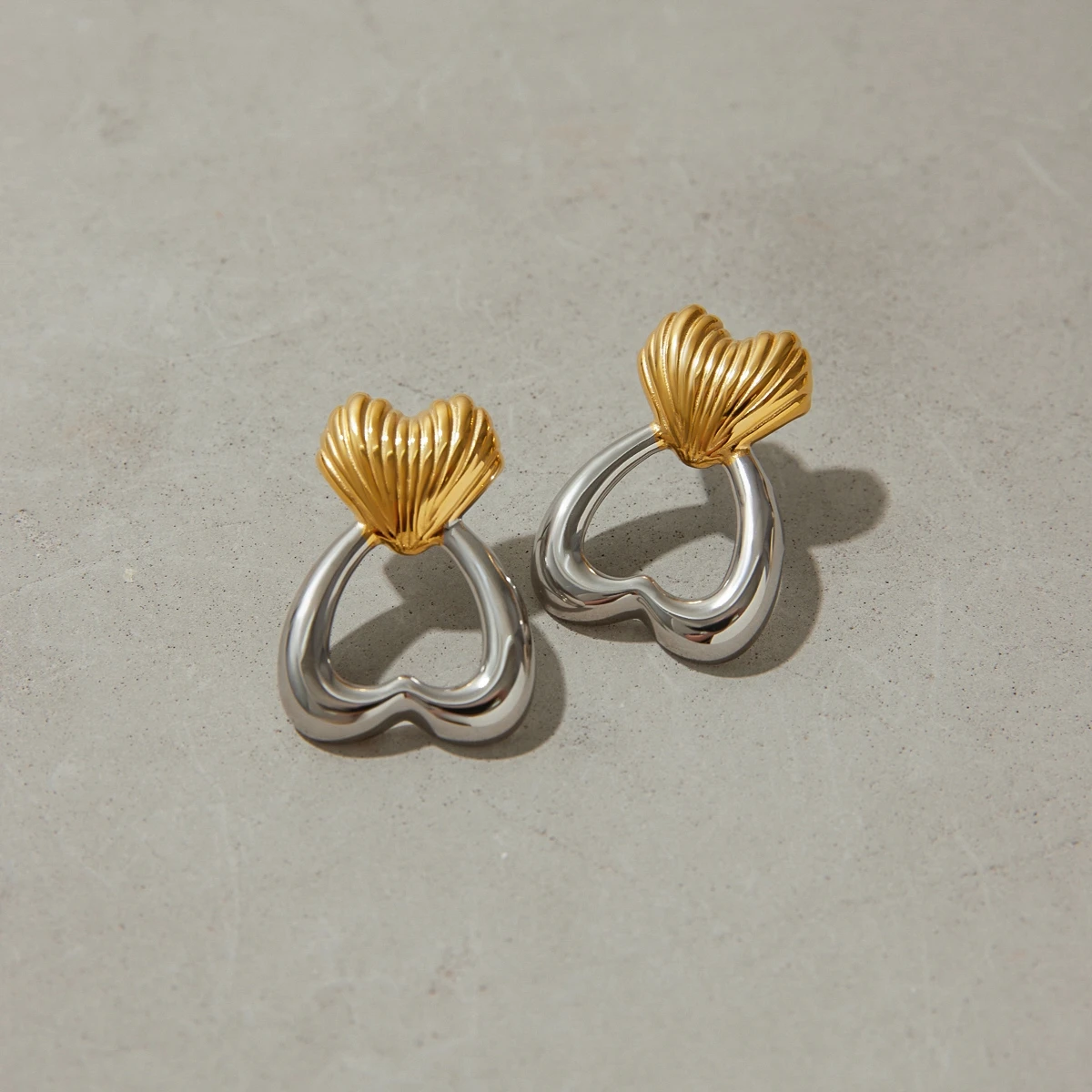 Experience elegance and durability with these stainless steel stud earrings featuring a heart-shaped design. Coated with PVD gold for long-lasting color, they resist fading, scratches, and water, ensuring lasting shine. Weighing approx. 15 grams, these trendy earrings have a secure screw-back fastening perfect for daily wear. Nickel-free, lead-free, and cadmium-free, they combine style and safety. Their fashionable, playful heart pattern makes them an eye-catching accessory, ideal for women seeking sophisticated yet fun jewelry. Perfectly crafted with a shiny gold finish, these earrings are designed to elevate your ensemble while offering long-lasting beauty and comfort.