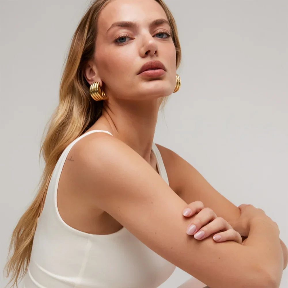 This trendy gold stainless steel hoop earrings