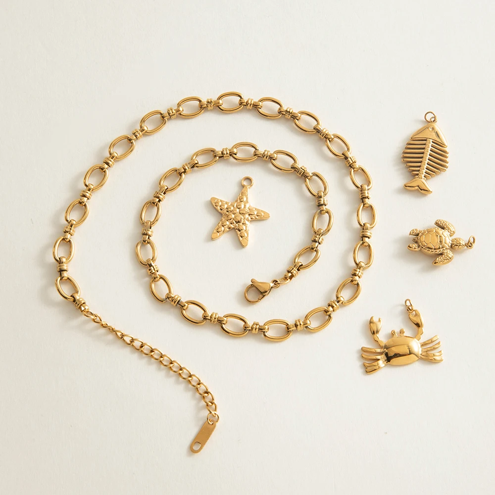 Every time you wear this beautiful gold stainless steel necklace, you'll appreciate its craftsmanship and unique charm. Whether you’re dressing for a casual outing or a festive event, it enhances your look with elegant and playful touches. Its durable, polished finish ensures lasting shine, while the customizable charms allow you to express your mood or creative spirit. Imagine the compliments you'll receive when this eye-catching piece becomes your signature accessory. Don't wait—add this versatile, artistic necklace to your collection today and experience the perfect blend of luxury and personality in your jewelry.