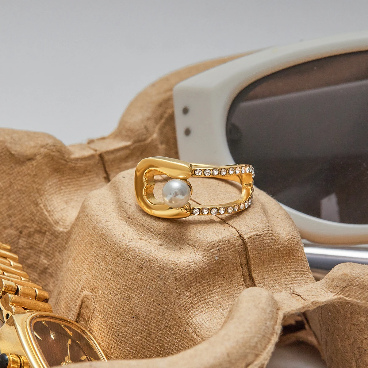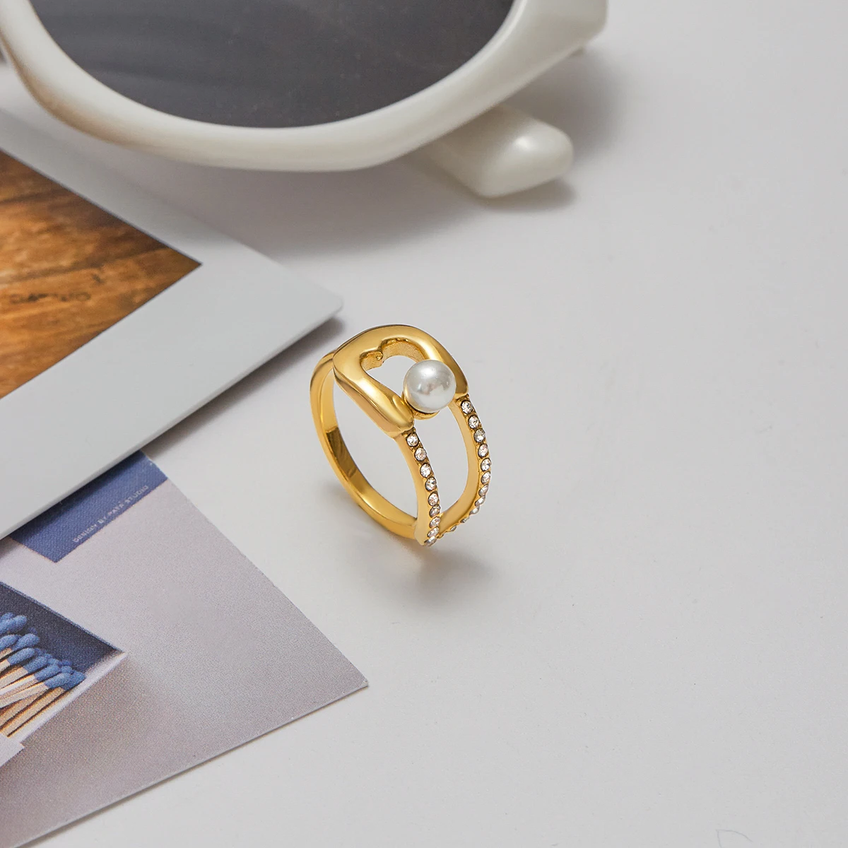 This Elegant Gold Stainless Steel Pearl Ring