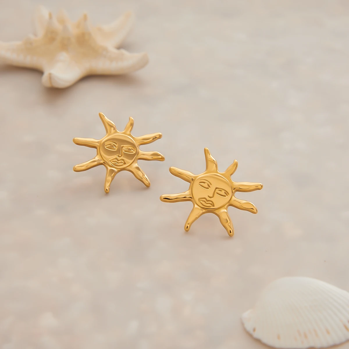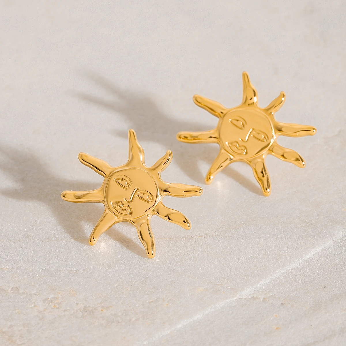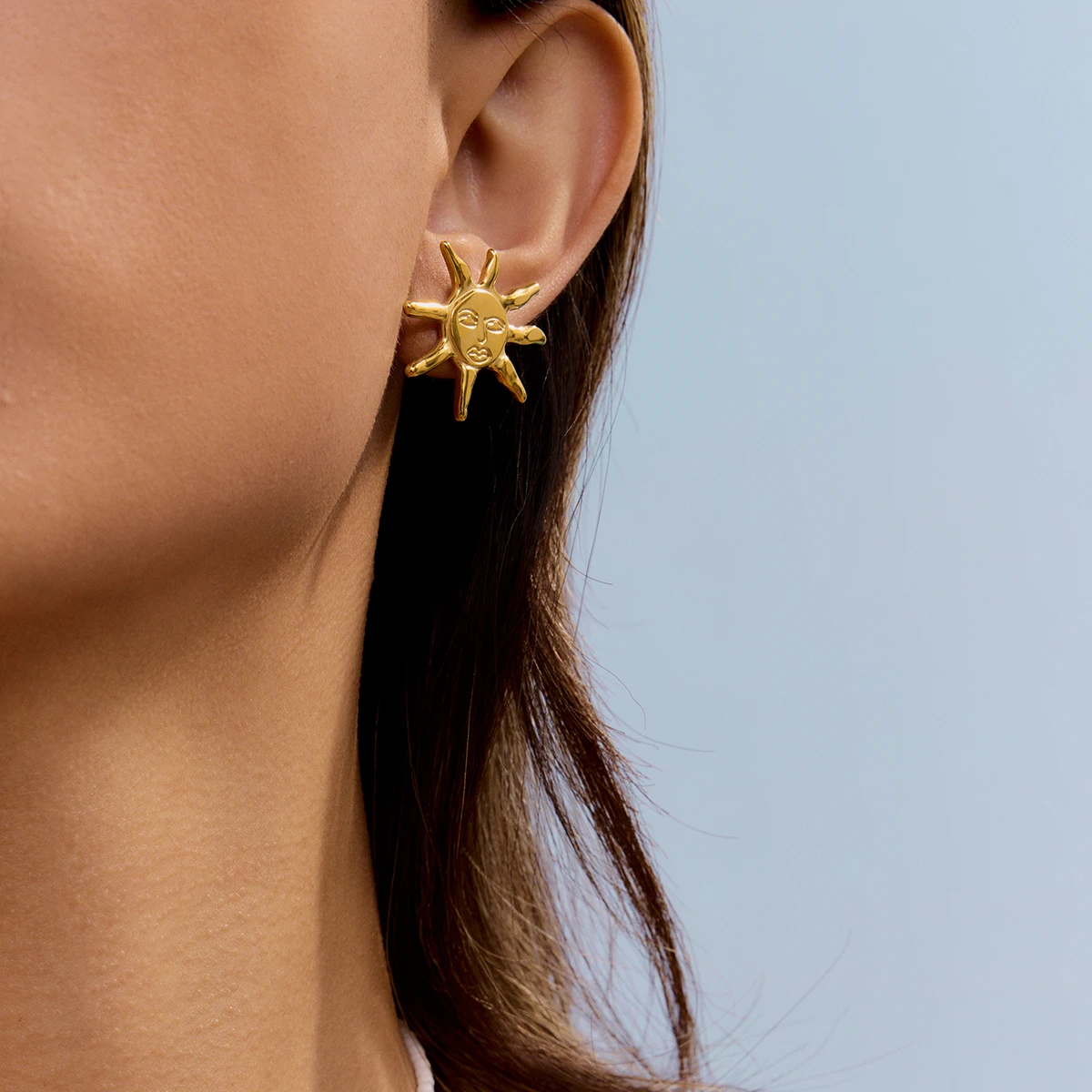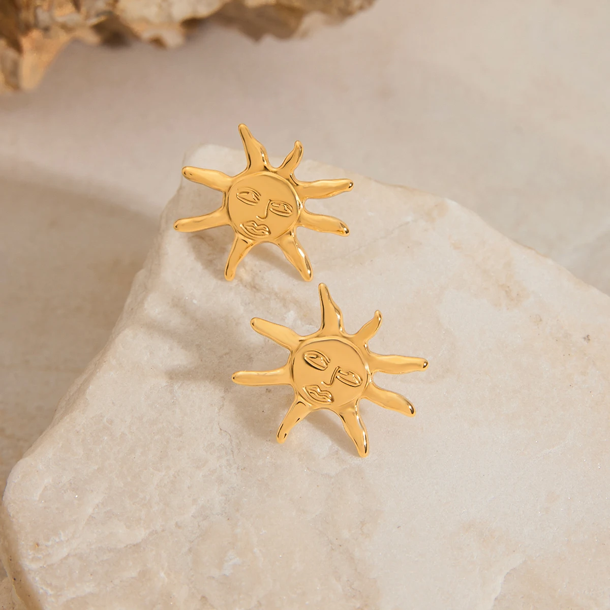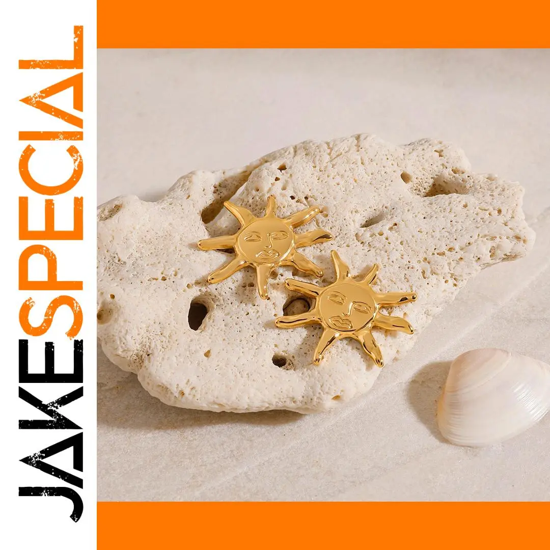 Gold Stainless Steel Sun Face Earrings for Women
