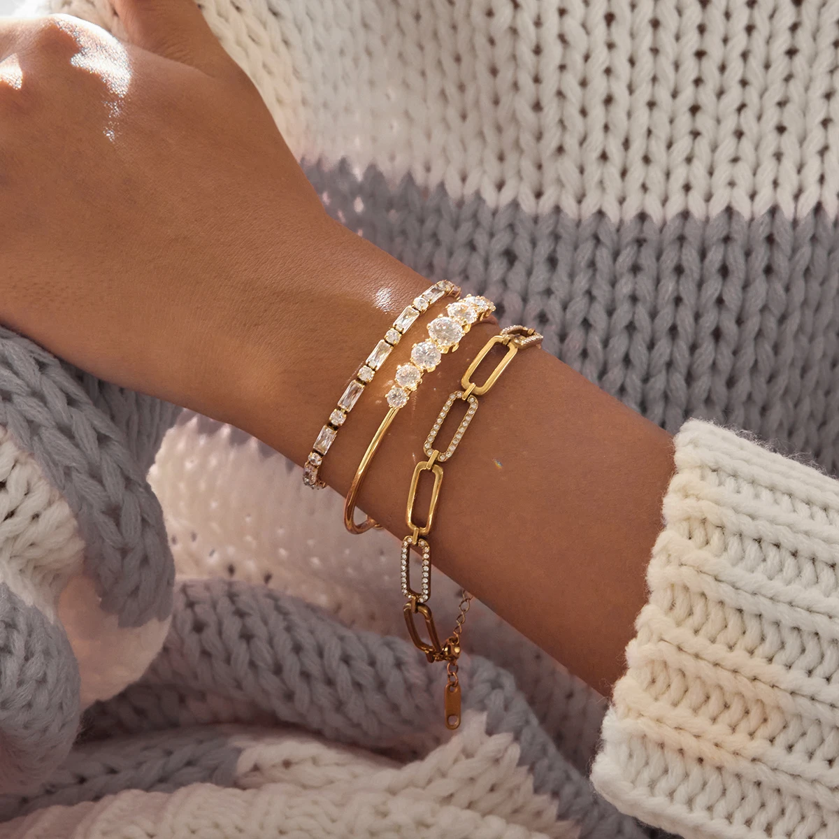 This Stylish Gold Stainless Steel Zircon Bracelet