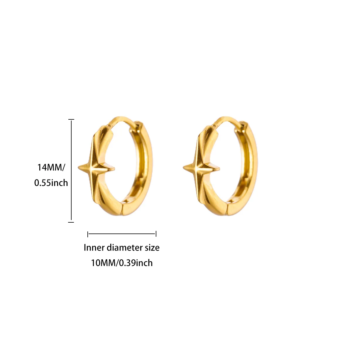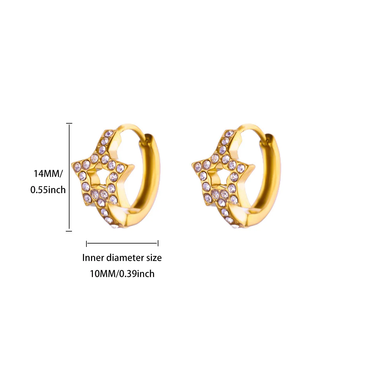 - Each earring measures approximately 10mm in diameter, with zircon stones embedded along the star outline, enhancing their sparkling appeal.