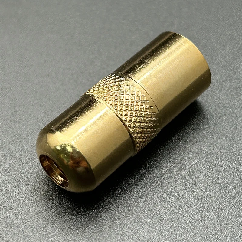 Experience a seamless upgrade to your guitar or bass with this high-quality endpin jack, designed to combine durability with sleek aesthetics. Its polished, elongated cylindrical body is crafted from premium metal, finished in a shiny gold tone that reflects light beautifully. The top features a smooth, slightly wider surface for easy handling, complemented by a textured knurled section near the base for secure grip during installation or adjustments. The fine, threaded grooves ensure a firm, reliable connection, while the darker, narrower socket at the bottom adds a stylish contrast. Weighing only 8 grams, this lightweight component is perfect for enhancing your instrument’s output and overall look, bringing professional quality to your musical setup.