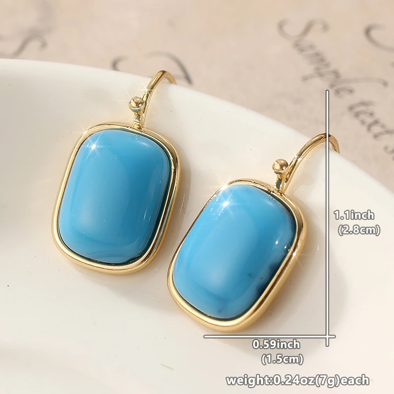 Enhance your accessory collection with these stylish drop earrings featuring a geometric square design inlaid with vibrant imitation turquoise. Crafted from durable copper alloy with a luxurious gold-tone finish, these earrings are perfect for women seeking versatile and trendy jewelry for any occasion—be it parties, engagements, weddings, or daily wear. The sleek, dangle style adds movement and elegance, while the classic gold color complements various outfits. Designed for comfort and style, these earrings seamlessly combine fashion-forward geometric shapes with eye-catching color accents, making them an ideal addition to elevate your look effortlessly.