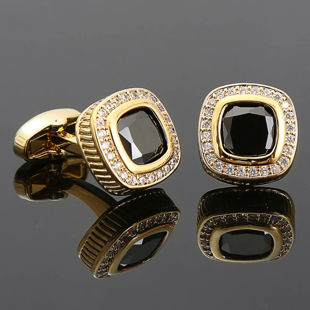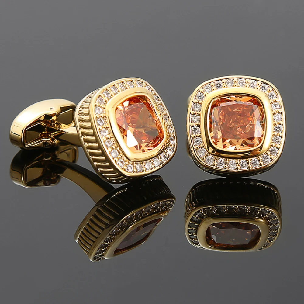 This Elegant Gold-Tone Square Gemstone Cufflinks