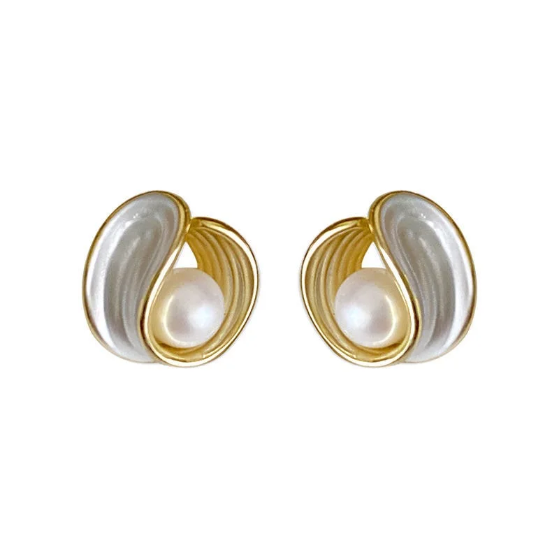Imagine elevating your style effortlessly with these this pair of earrings. Their unique irregular, swirling circular metal frames in a warm gold tone create a dynamic and modern silhouette. At the center, each earring features a lustrous, smooth simulated pearl that adds timeless elegance and sophistication. Perfect for any occasion, these earrings combine contemporary artful design with classic details to suit women and girls seeking a chic accessory. Their lightweight zinc alloy construction ensures comfort throughout your day, while the push-back fastening guarantees secure wear. Whether for daily wear or special events, this jewelry offers a versatile touch of elegance that enhances your personal style. Treat yourself or gift someone special with these striking earrings.
