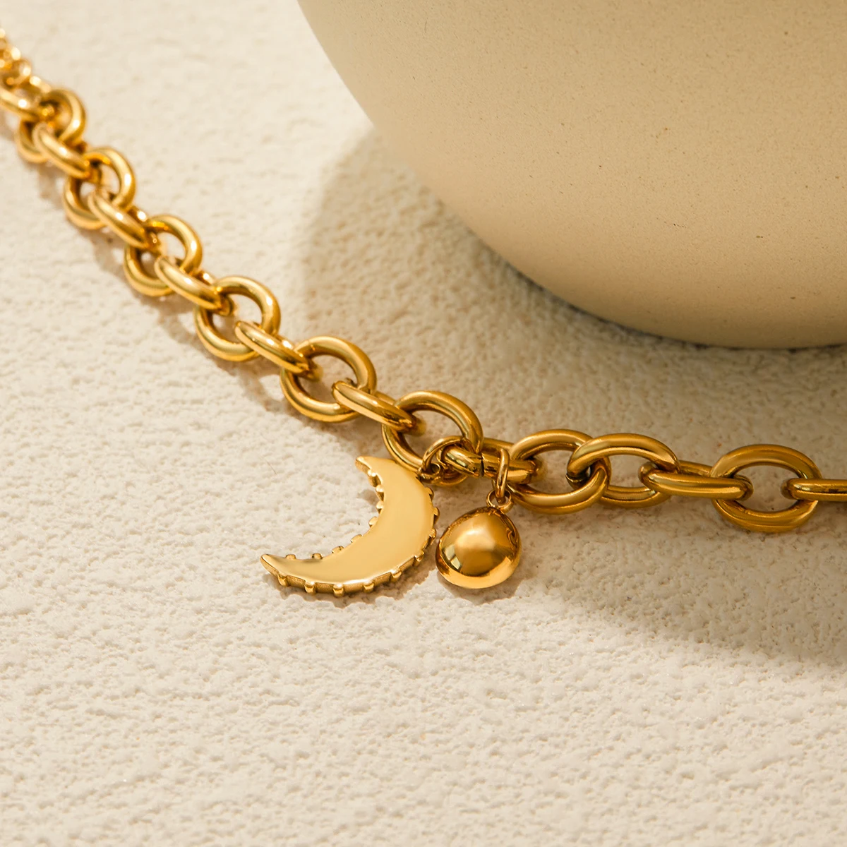 - Features a sleek crescent moon pendant filled with black enamel, outlined with matching gold, for a modern and stylish aesthetic that complements any outfit.
