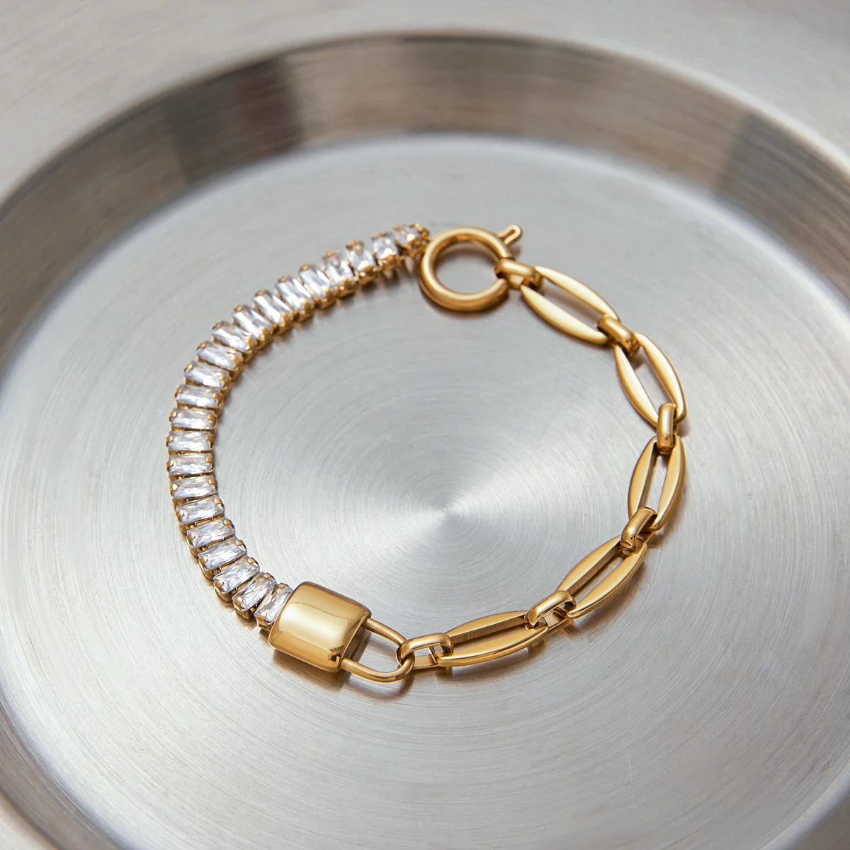 Gold-Tone Stainless Steel Cubic Zirconia Bracelet