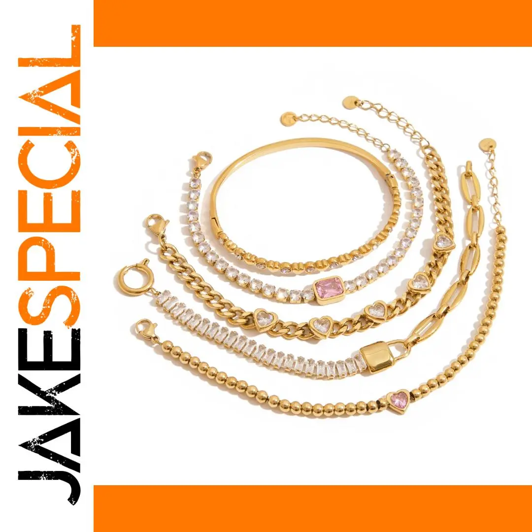 Experience timeless elegance with this gold-toned stainless steel cubic zirconia bracelet, approximately [insert dimensions], featuring a polished, shiny finish. The tension-set round cubic zirconia stones create a continuous, sparkling row that catches the light from every angle. Designed for everyday wear, it is waterproof, tarnish-resistant, and scratch-proof, making it suitable for active lifestyles. Hypoallergenic and free from nickel, lead, and cadmium, this bracelet is perfect for sensitive skin. The secure box-with-tongue clasp ensures durability and ease of use, making it an effortlessly sophisticated accessory that elevates any outfit with its delicate yet luxurious aesthetic.