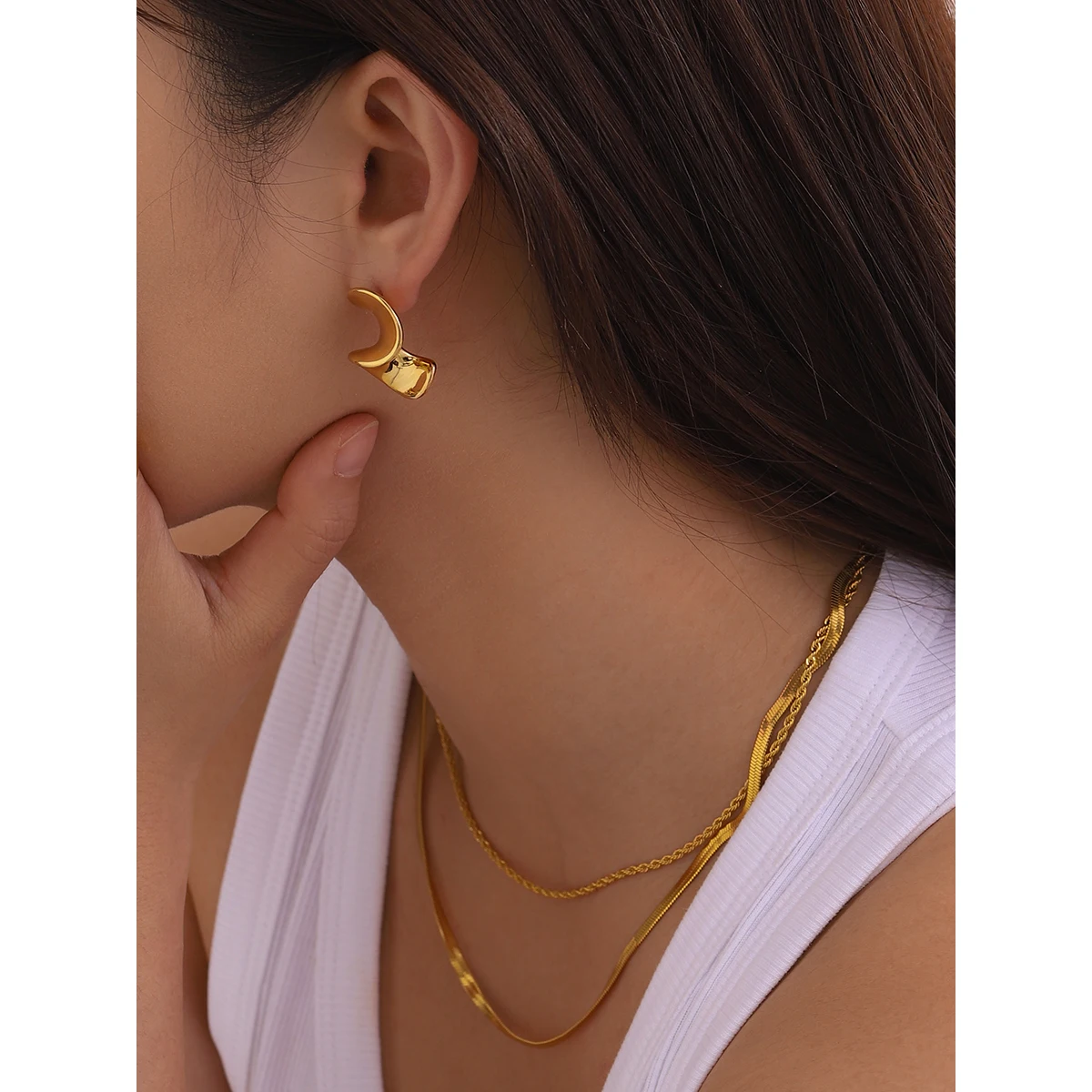 Now is the perfect time to add these fashionable gold-tone geometric earrings to your collection. Imagine the compliments you'll receive when you wear this sophisticated accessory that effortlessly combines modern design with everyday comfort. Whether dressing up for a special event or just elevating your daily look, these earrings radiate confidence and elegance. Their durable stainless steel construction ensures they will remain stunning over time, making them a smart investment in your personal style. Don't wait—step into the world of contemporary fashion with this elegant, eye-catching pair today!
