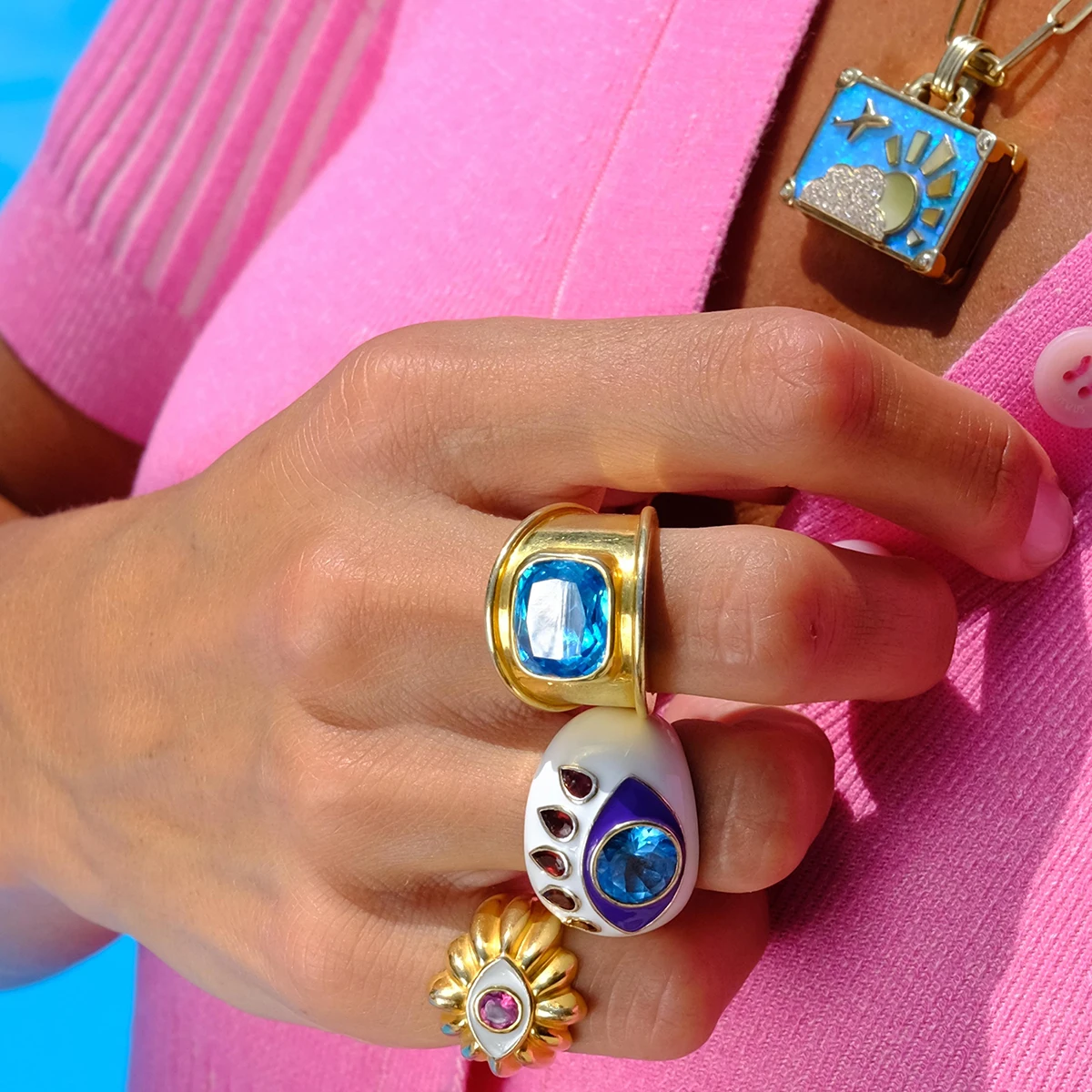 - The ring is available in sizes 6, 7, and 8, accommodating a range of finger sizes while maintaining a chic, modern appeal for any occasion.