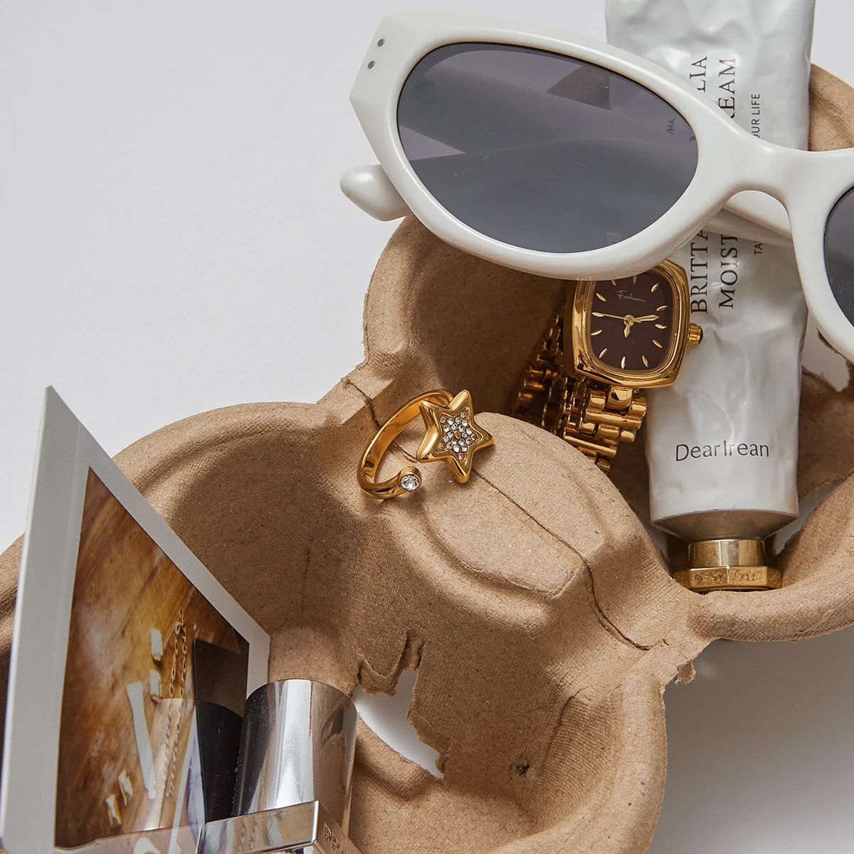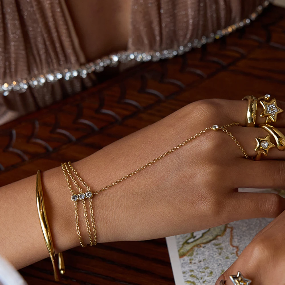 - The prominent star-shaped motif is outlined in gold and adorned with sparkling zircon stones, creating an eye-catching shimmer that enhances your fashionable look.
