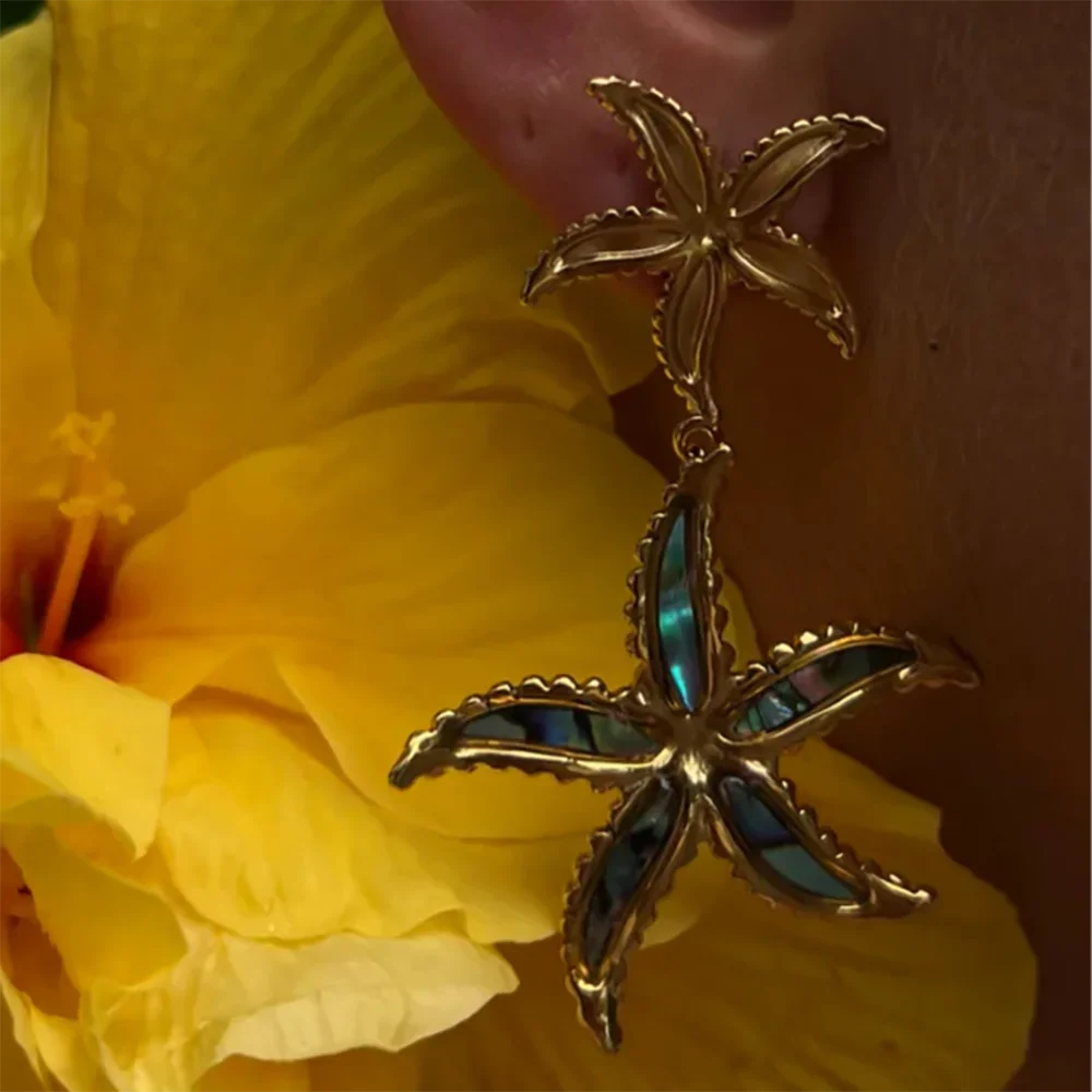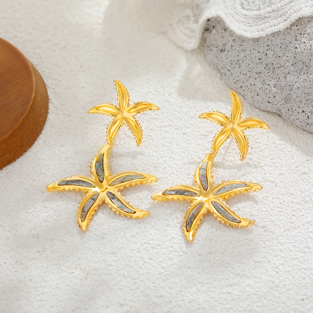- Designed with a dangling style, featuring detailed starfish and star motifs infused with textured ridges that mimic natural ocean creatures for a realistic effect.