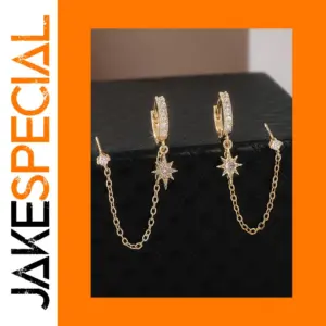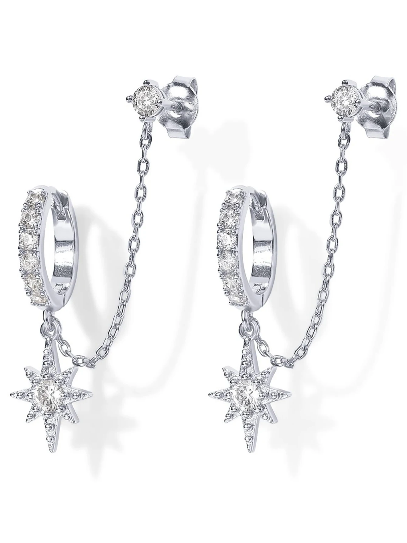 - Features stunning cubic zirconia stones arranged in a single row on the small hoops and along the star’s points, offering a brilliant sparkle that catches the eye at every angle.
