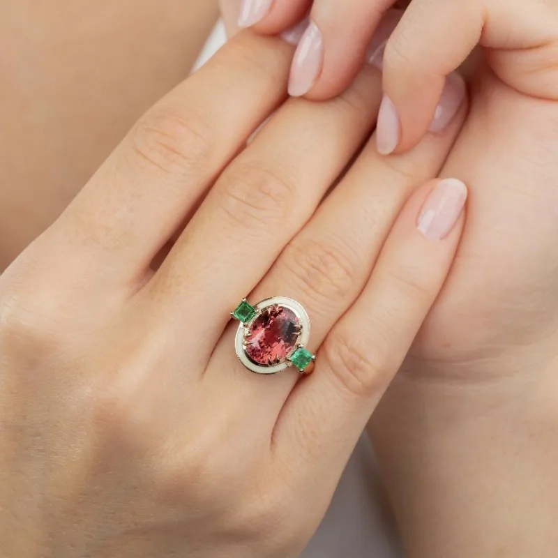 Elevate your style with this elegant women’s ring featuring a polished zinc alloy band and a striking round gemstone in either deep red or vibrant green. The geometric design showcases a bezel-set central stone flanked by small square accents, creating a sophisticated yet fashionable look perfect for parties and special occasions. Available in sizes 6, 7, 8, 9, and 10, the ring combines luxurious metalwork with colorful inlay accents, adding vibrant contrast and visual appeal. Its classic design is versatile, making it an ideal accessory to complement both elegant and casual outfits, allowing you to express confidence and style effortlessly.