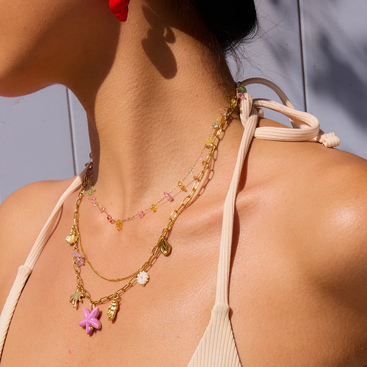 - The necklace features a secure, lightweight clasp for easy adjustment and comfortable daily use, suitable for active summer days and relaxed beach evenings.