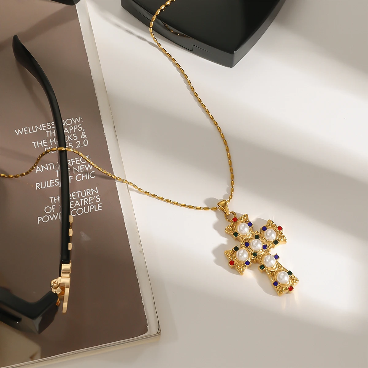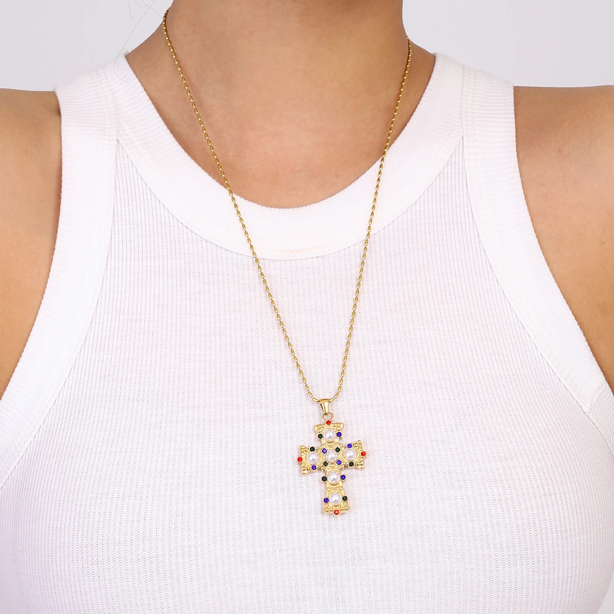 Imagine yourself wearing this exquisite piece that adds vibrant elegance to any outfit. Its luxurious design and durable materials promise a lasting, eye-catching accessory you’ll reach for repeatedly. Whether for everyday wear or special moments, this necklace will quickly become your favorite. Treat yourself or gift it to someone special—its sophisticated blend of classic pearls and colorful stones makes a memorable impression. Don't wait—enhance your jewelry collection now with this beautiful, high-quality gold-toned cross necklace. Confidence, elegance, and style are just a wear away!