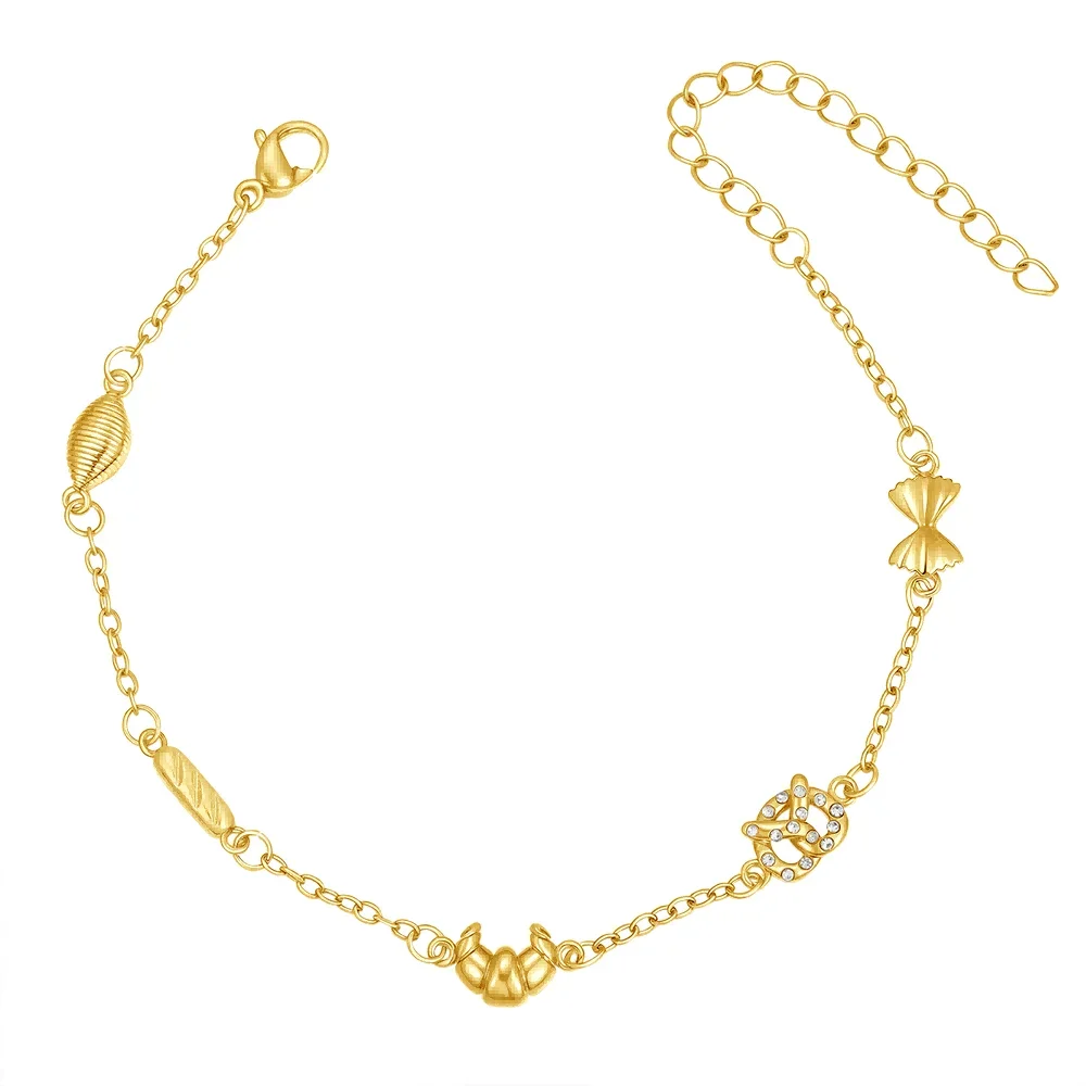 Enhance your jewelry collection with this trendy women’s cuff bracelet, crafted from copper with a luxurious gold finish. Designed in a chain link style, it features a prominent bowknot pattern and intricate charms, including a coiled barrel-shaped detail and textured beads. The adjustable, clasp-free design ensures a comfortable fit for all wrist sizes. Perfect for parties, anniversaries, romantic dates, or vacations, this fashionable accessory exudes modern elegance. Model number T384 and metal color T384 highlight its unique style, making it an ideal gift for brides, friends, family, or significant others. Add a touch of chic sophistication to your look today.