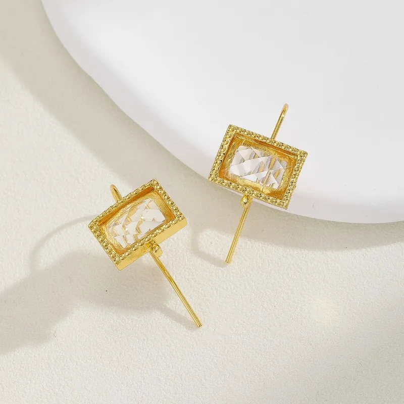 Experience the allure of these stylish and modern drop earrings that instantly elevate your look for any occasion. Crafted from high-quality zinc alloy with a shiny, gold-colored finish, these earrings feature a bold, geometric square shape. The open rectangular frames are accented with textured borders and tiny bead-like details that add a sophisticated touch. Inside, the white and green zircon stones are faceted to sparkle brilliantly, creating a dazzling contrast against the gold backdrop. Lightweight and comfortable, these earrings easily complement your daily outfits or special event ensembles like parties, weddings, and anniversaries. Their versatile design makes them perfect to enhance your elegance anytime you want to look polished and fashionable.