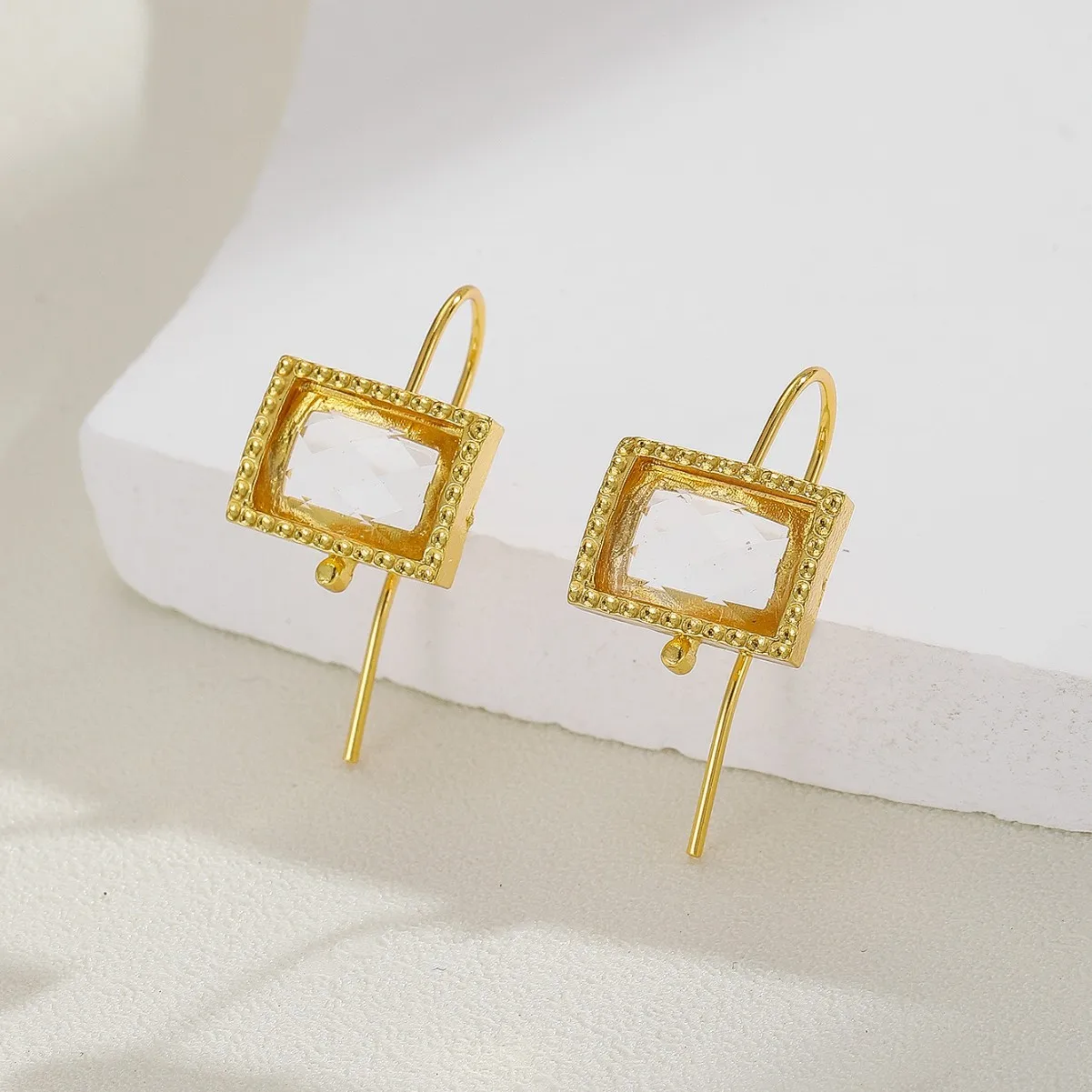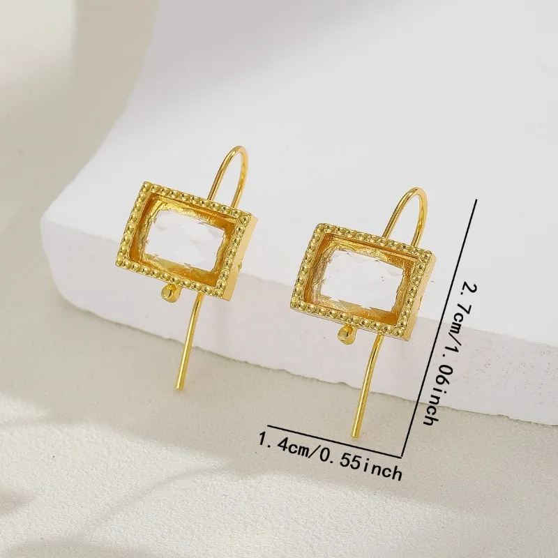 - Geometric square drop design crafted from durable zinc alloy with a polished gold finish for a luxurious appearance.